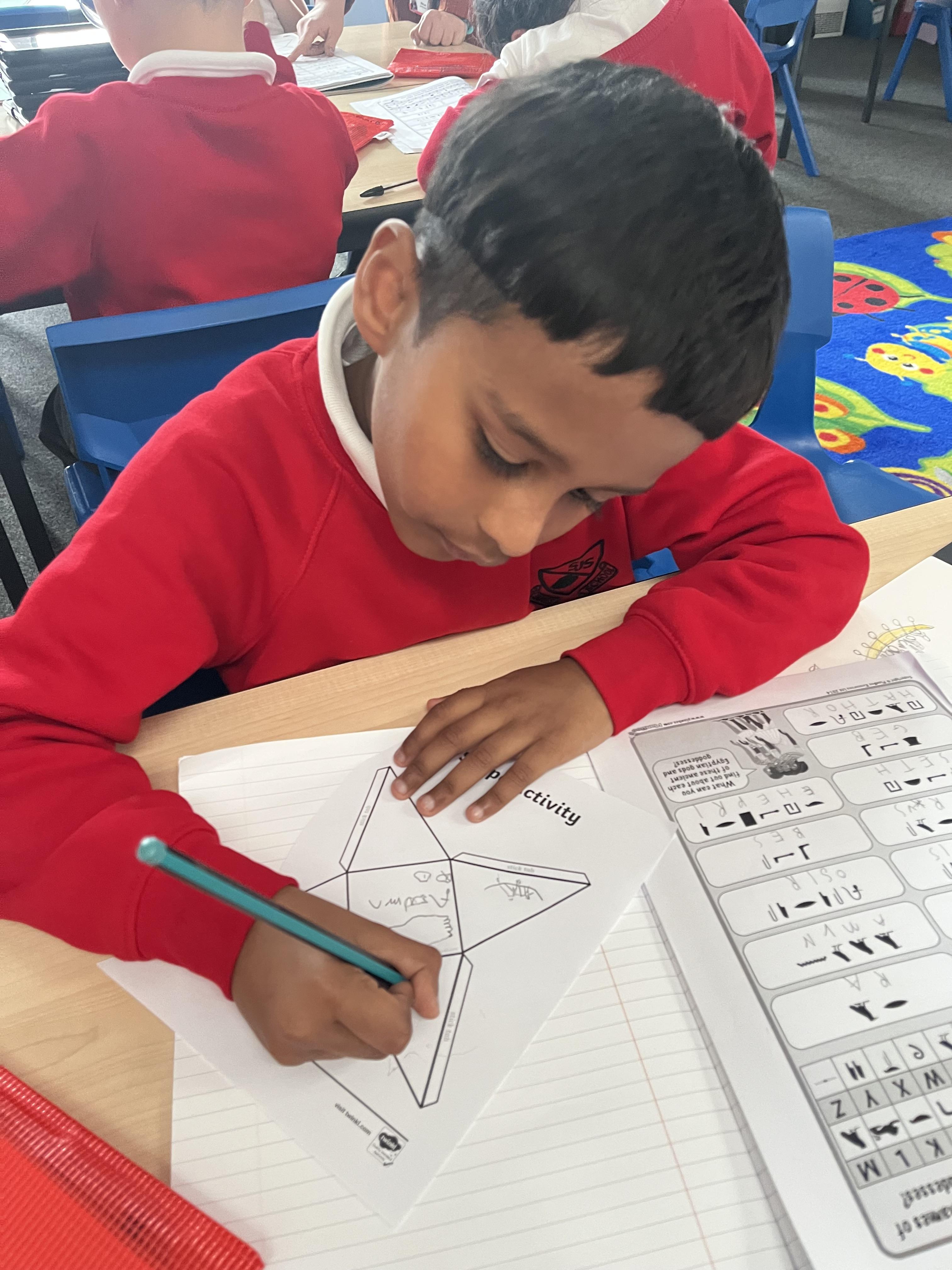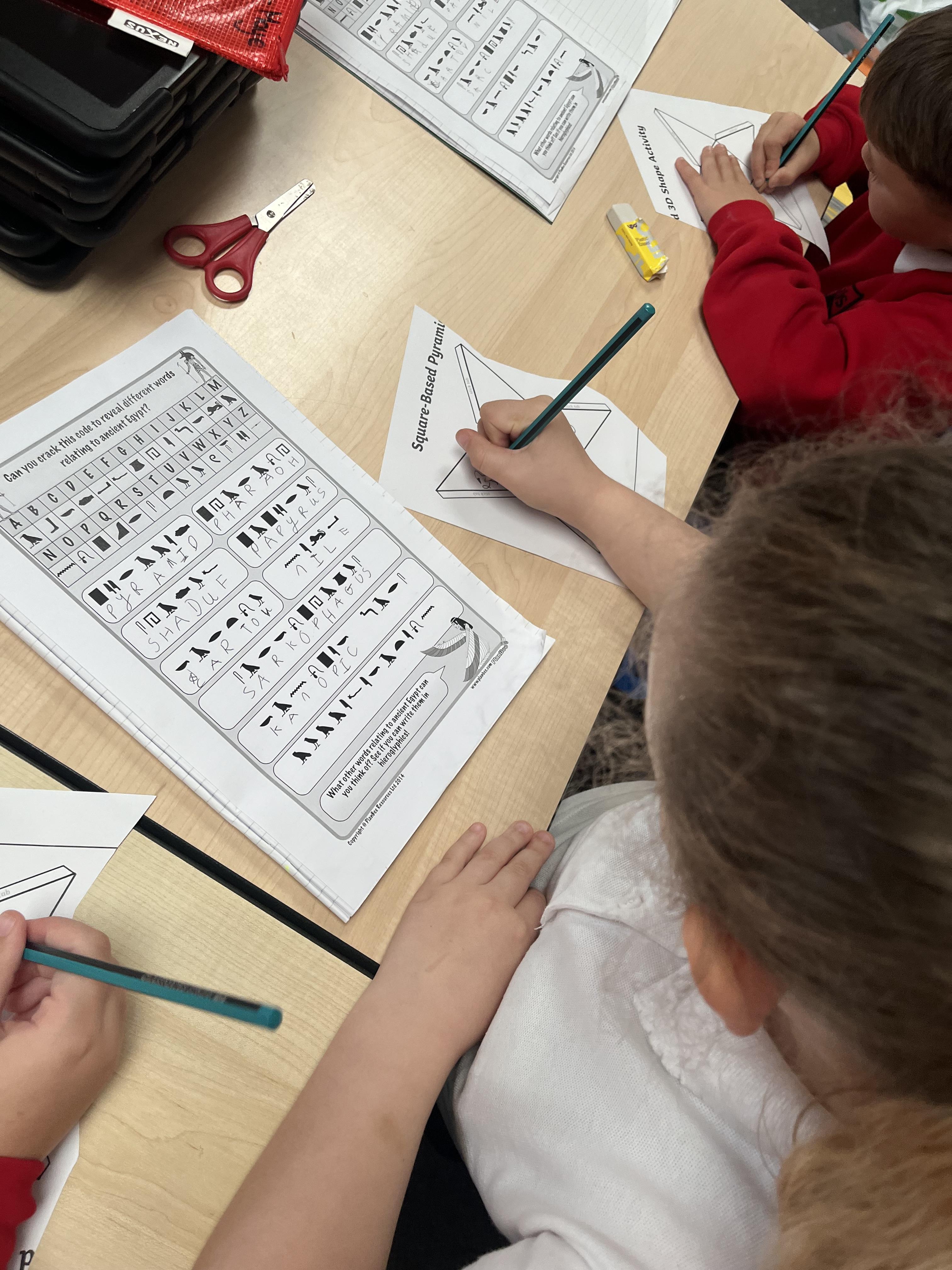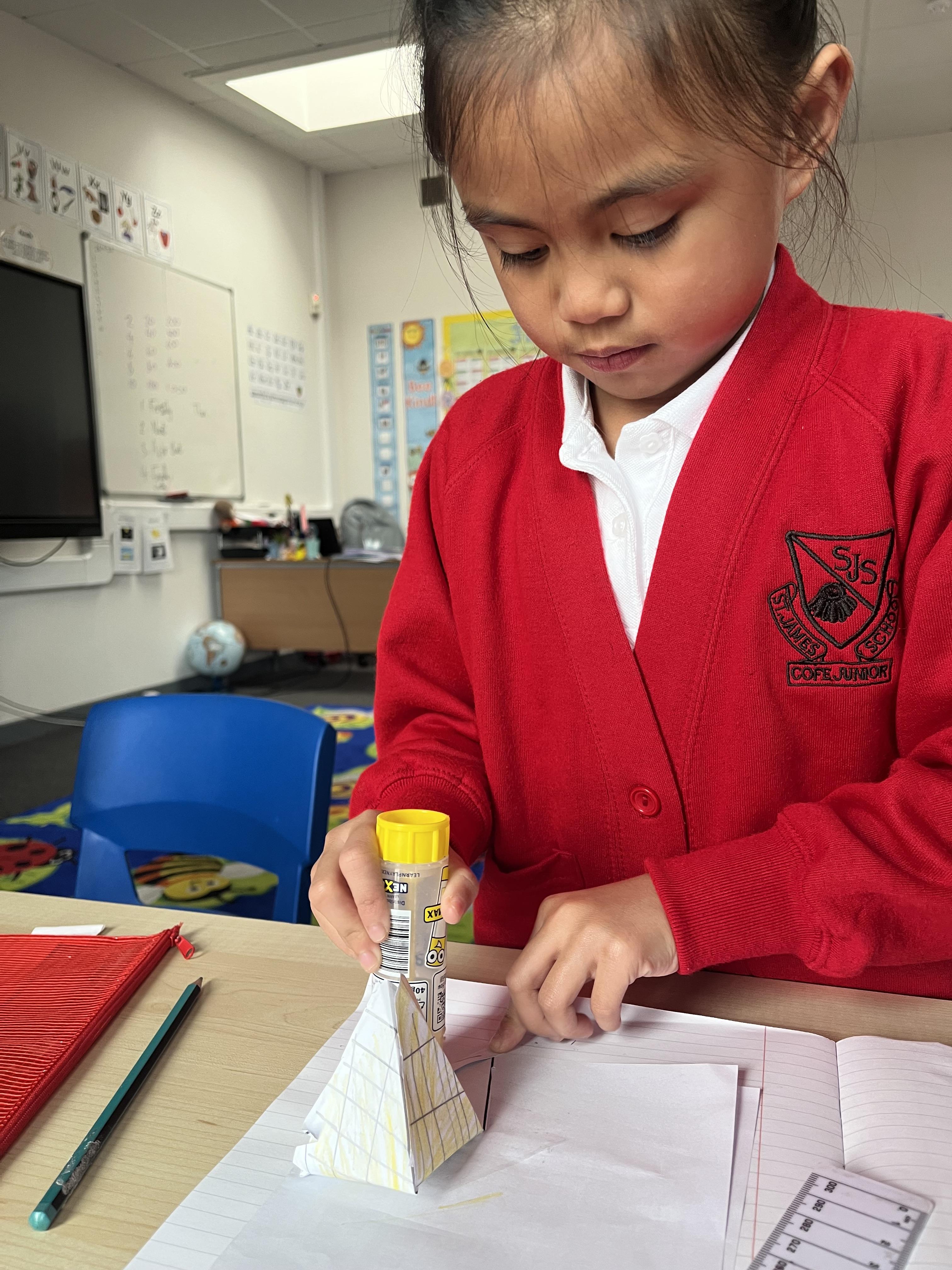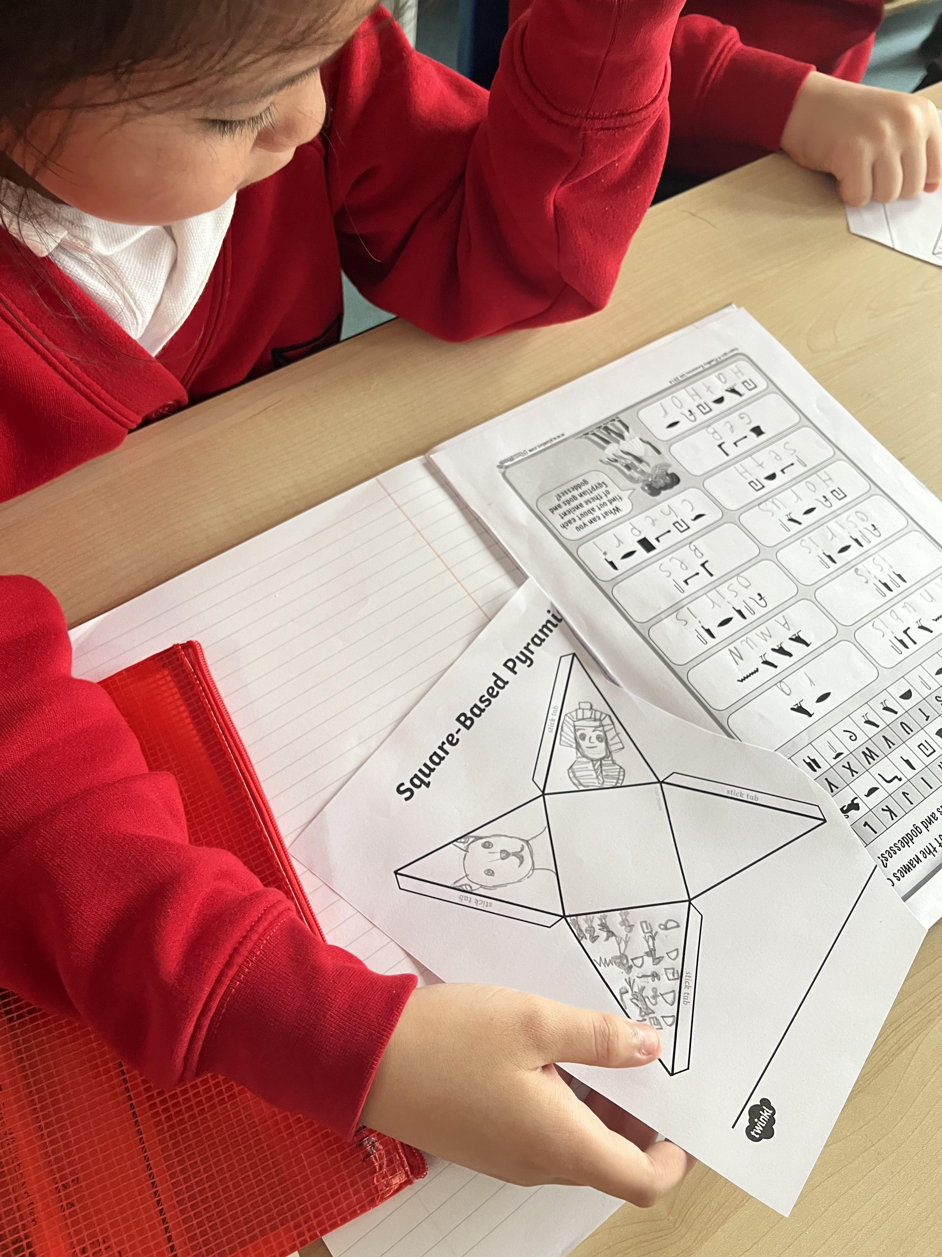 In 3B we made some Egyptian pyramids to display in the classroom after learning all about what the pyramids were built for and how they were built! Some children even wrote messages inside their pyramids just like the Ancient Egyptians did in hieroglyphics!