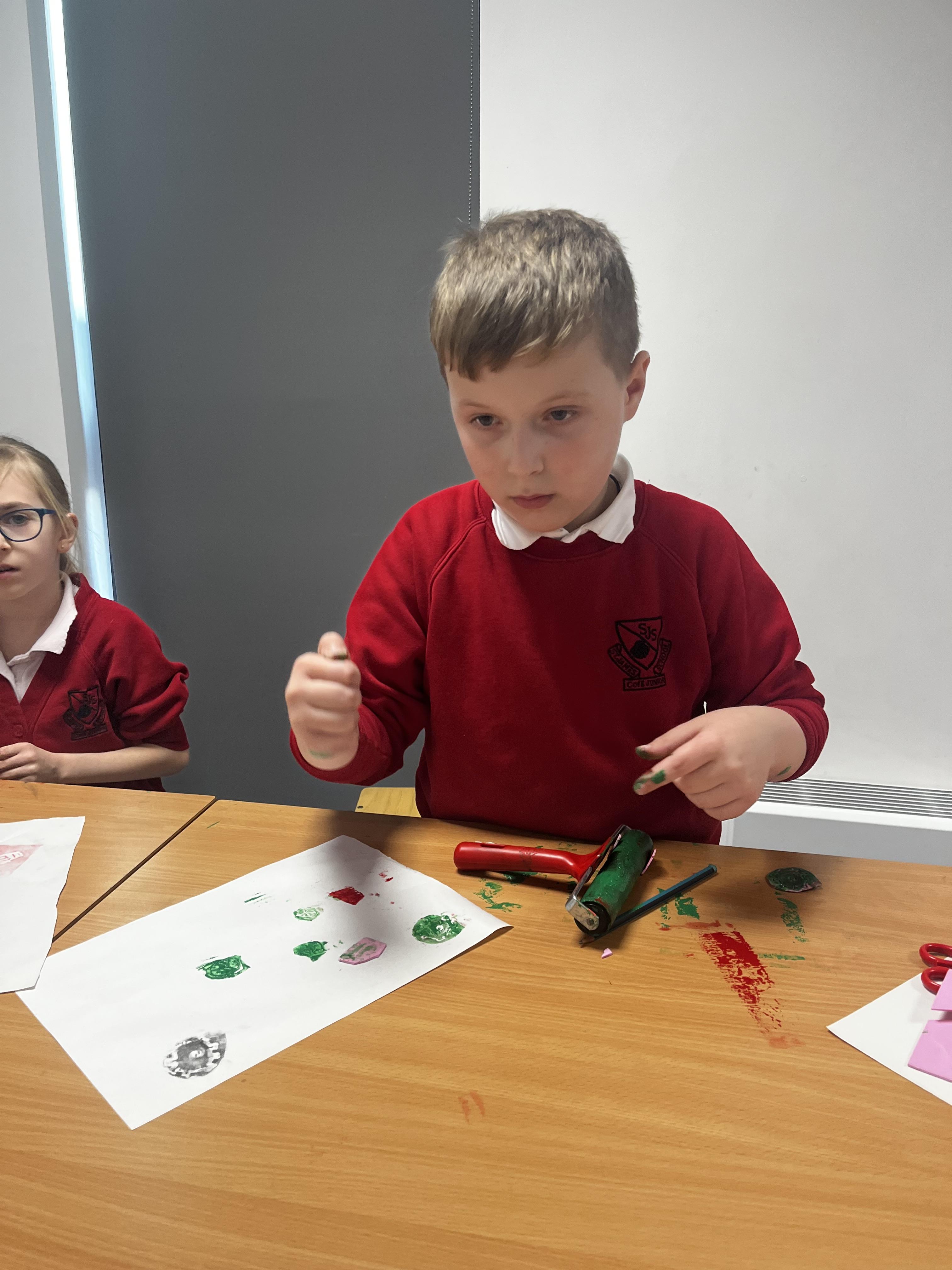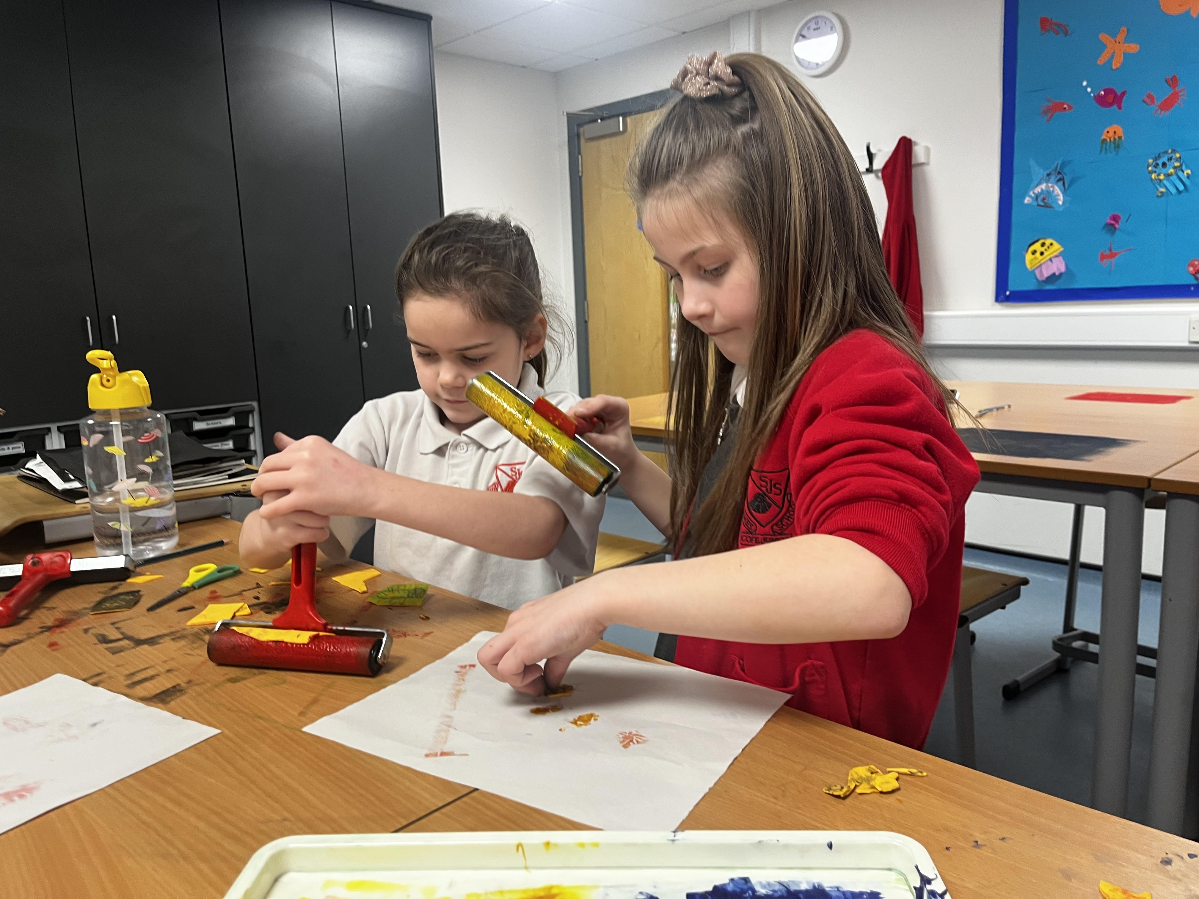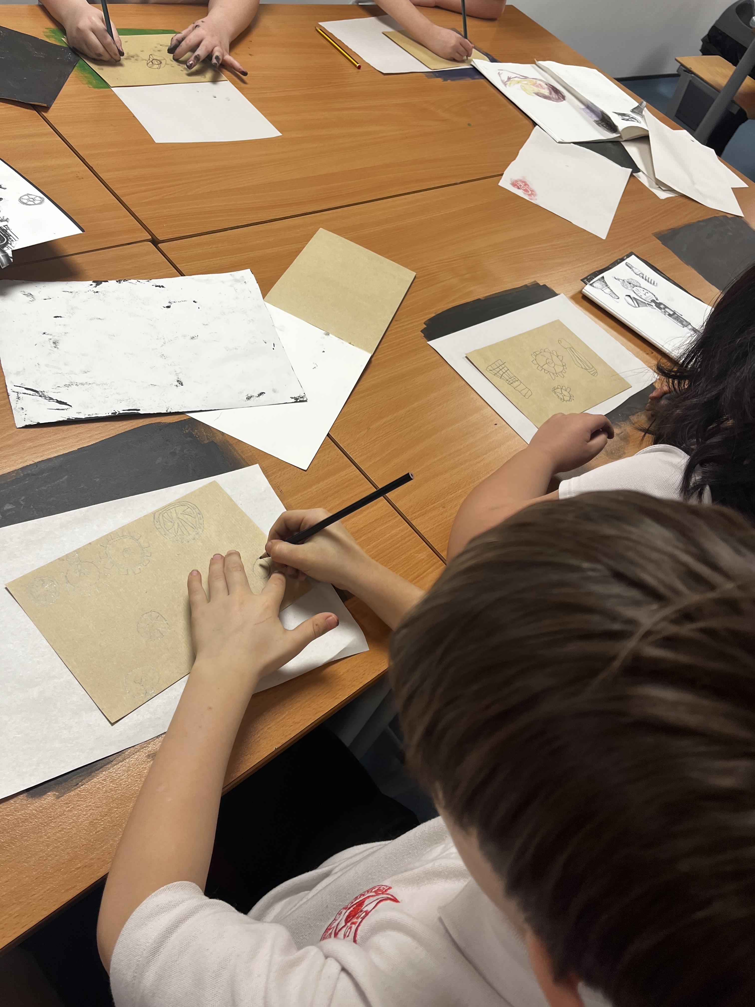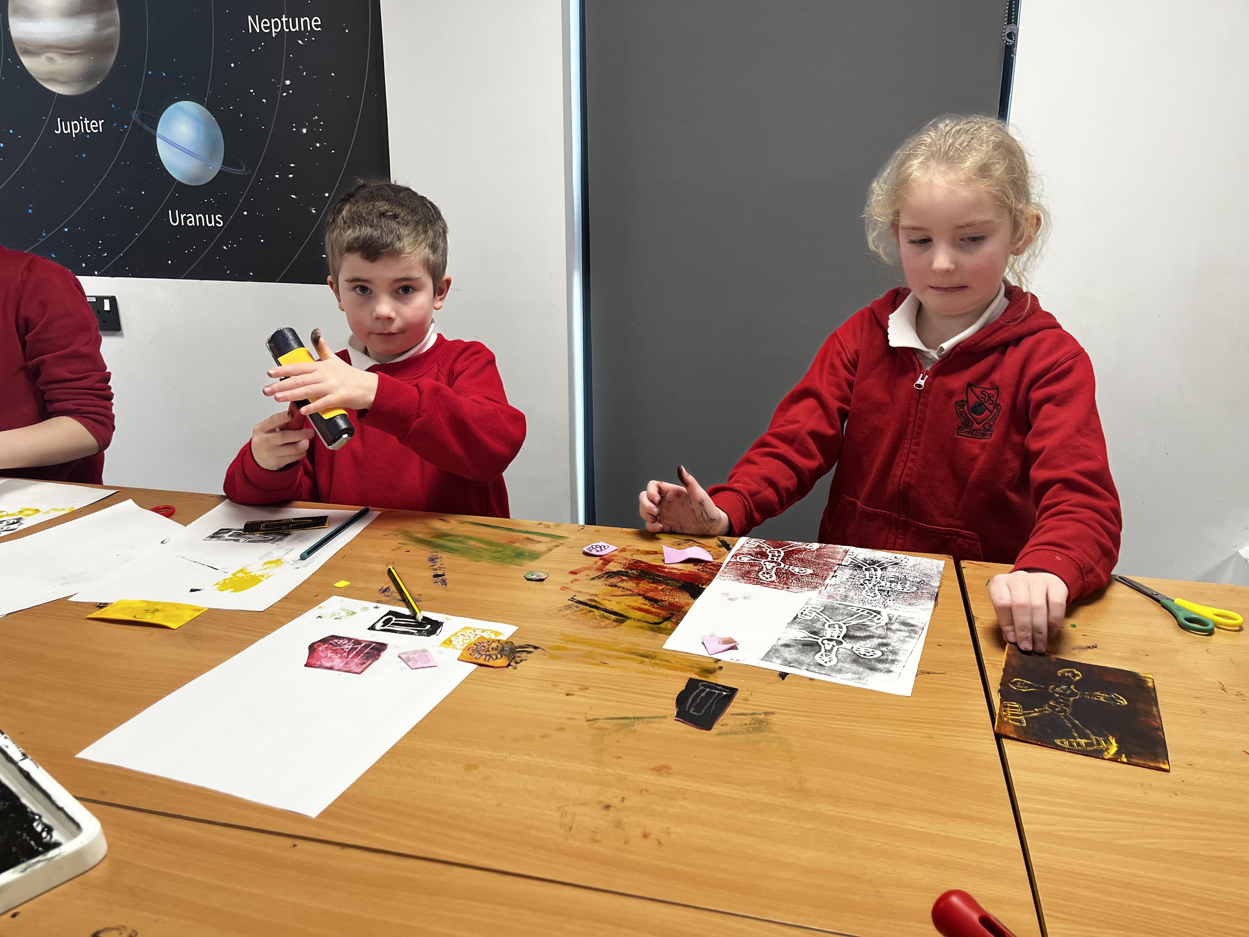Power prints in art where the children used ink to create some prints and then a college