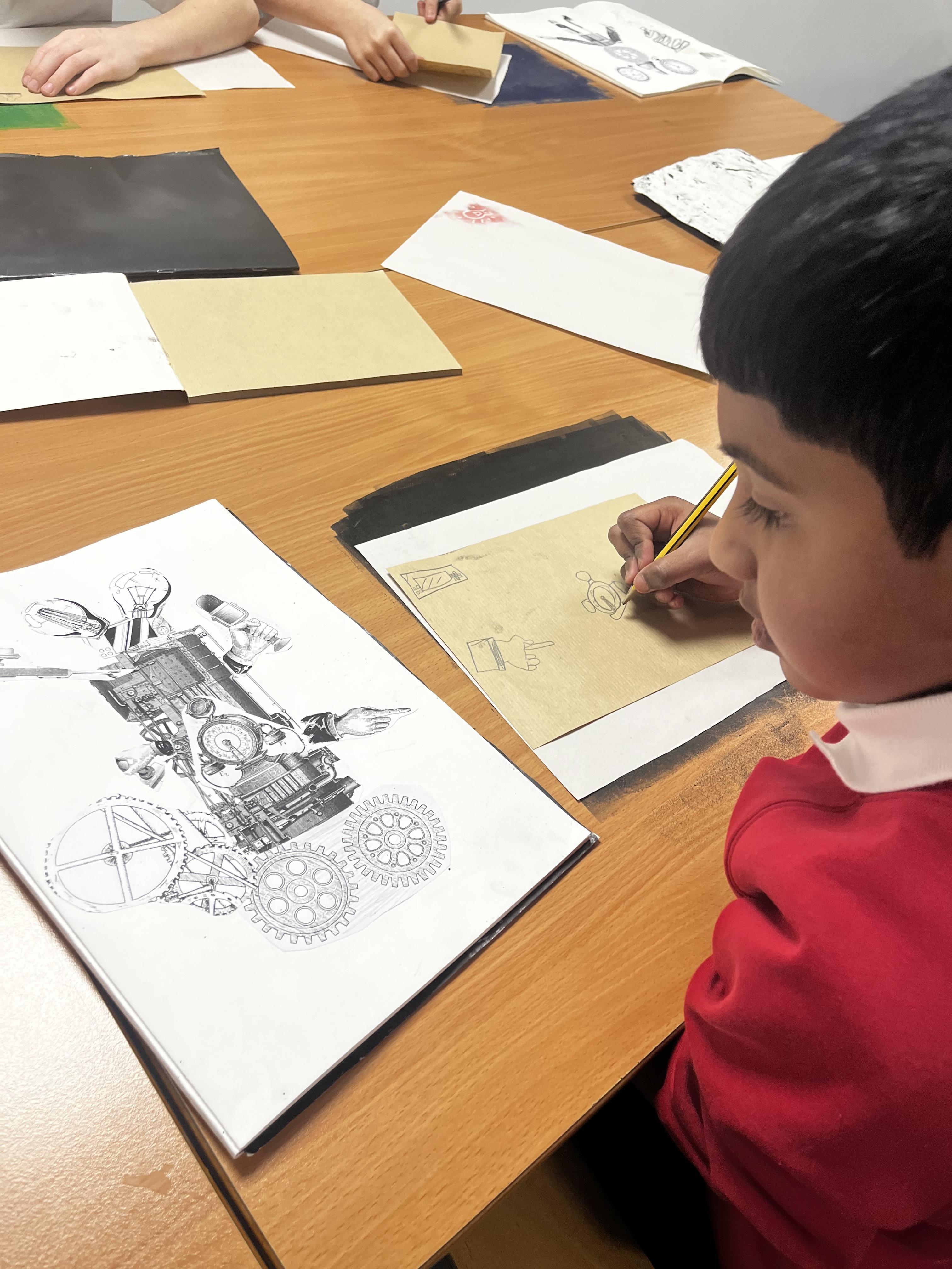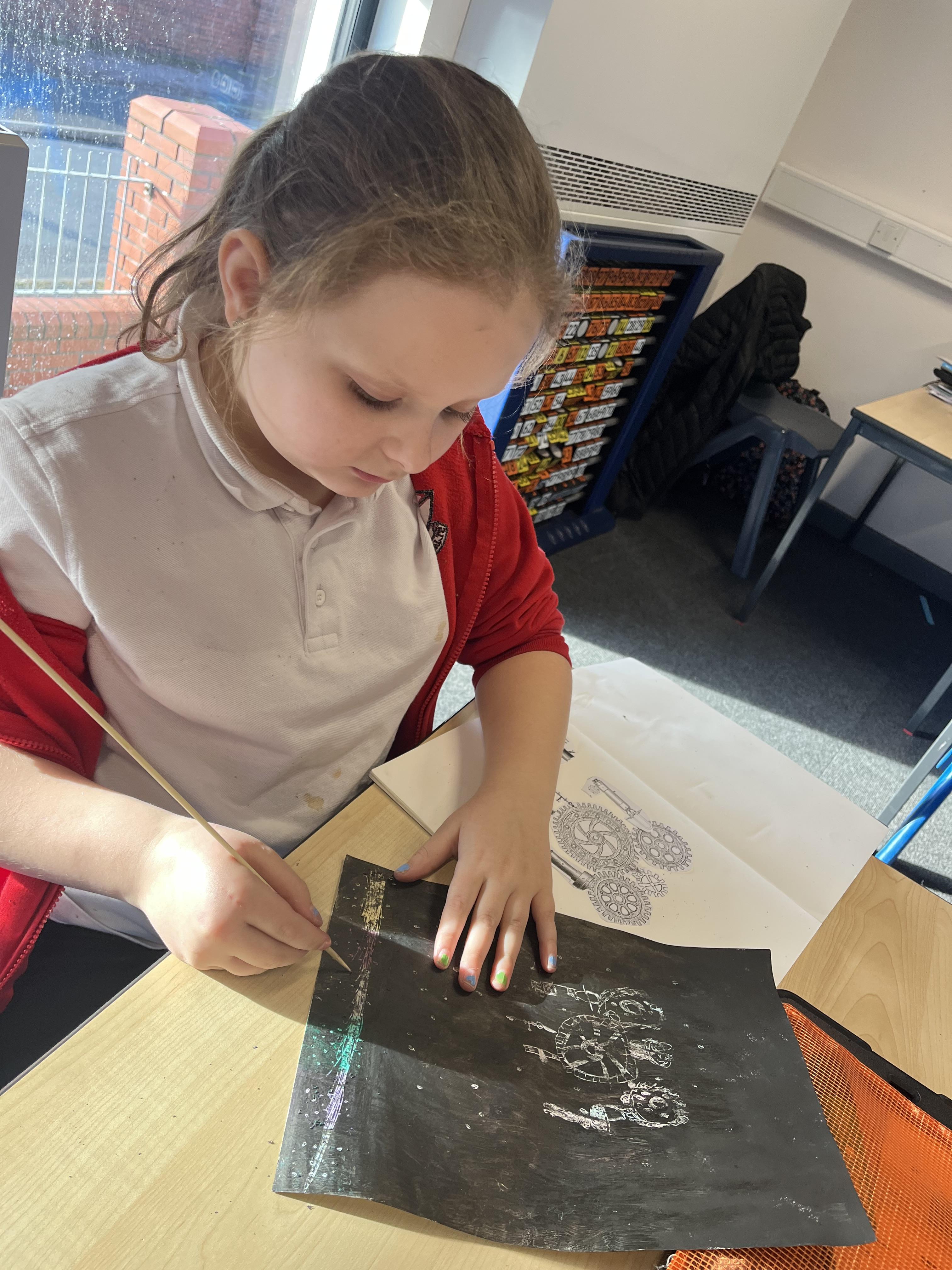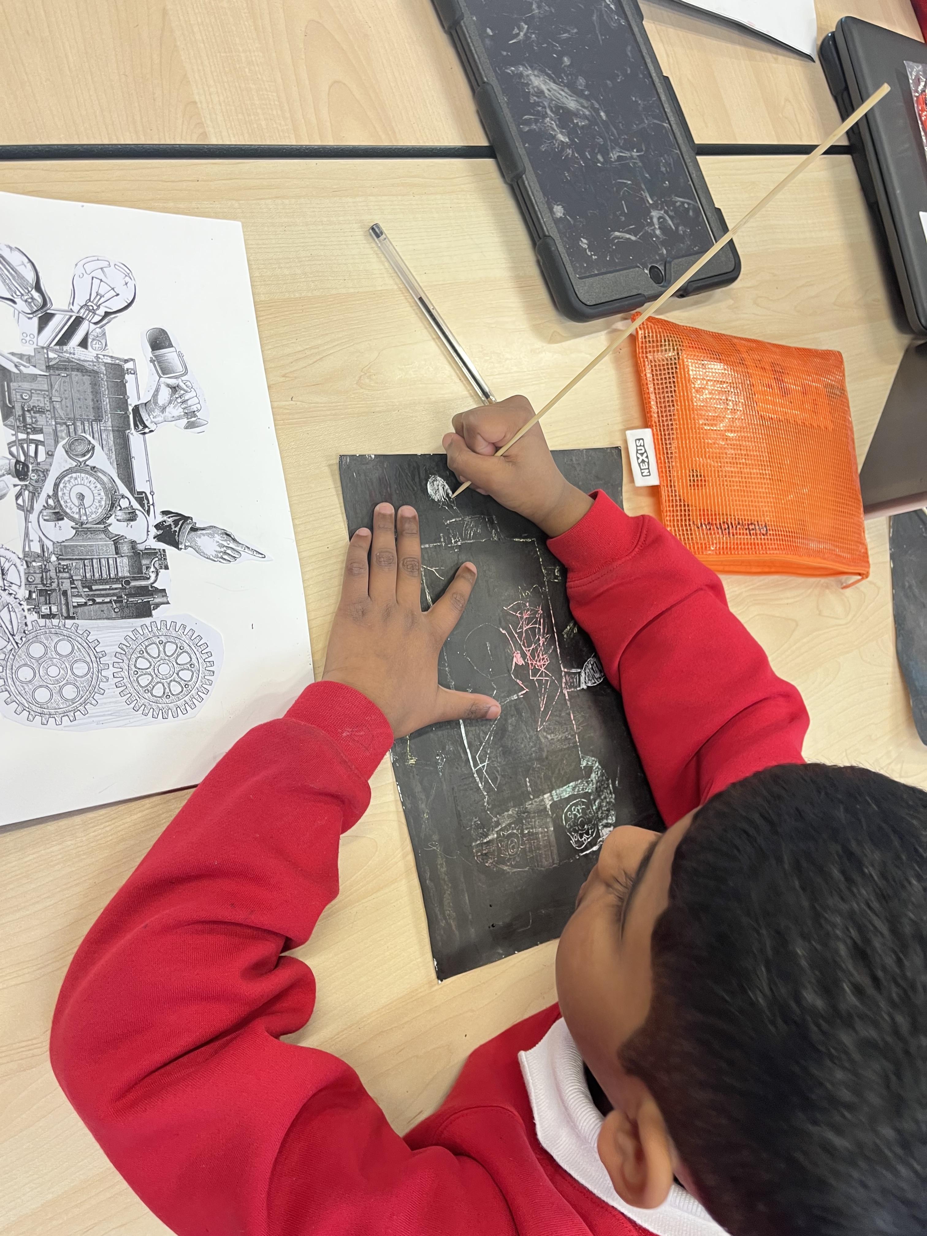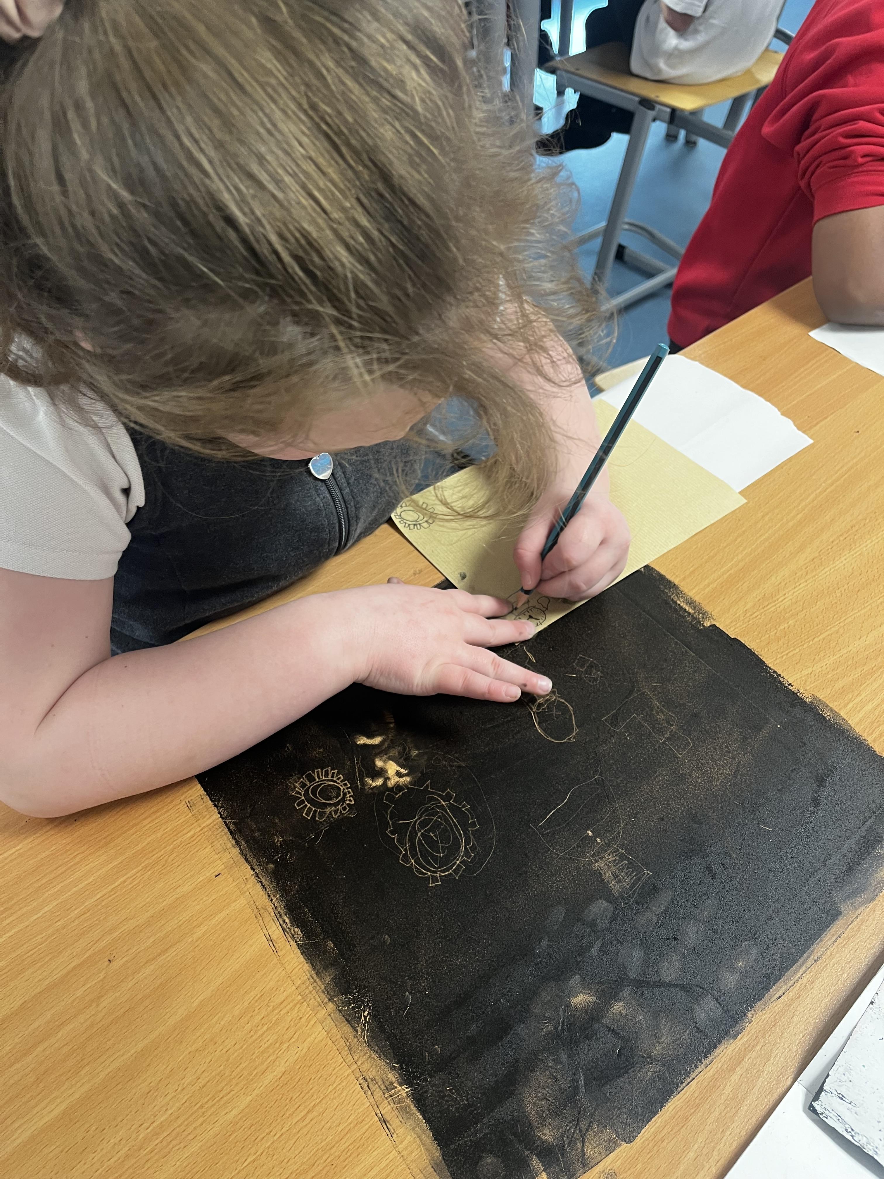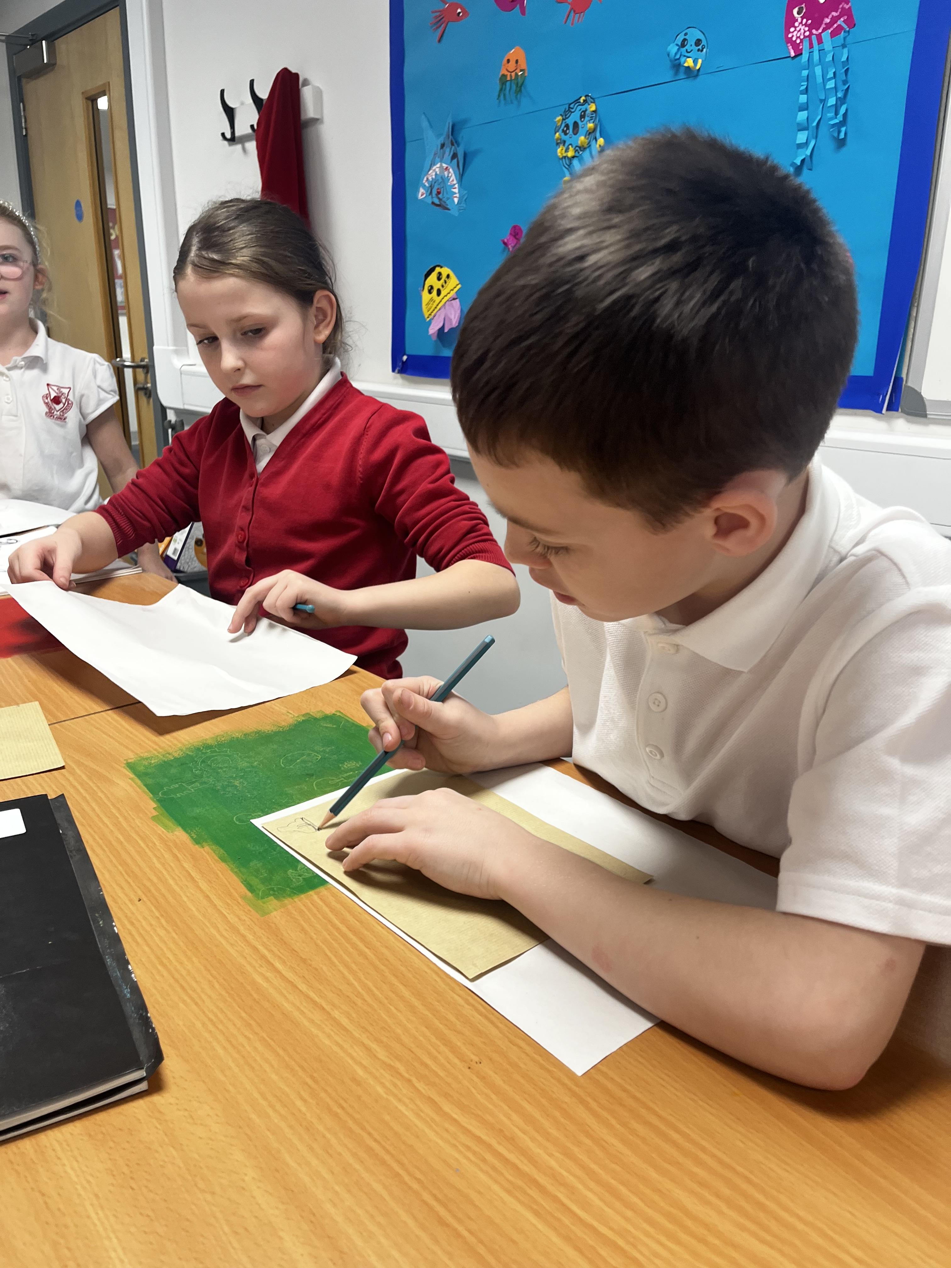 Power prints in art where the children used ink to create some prints and then a college