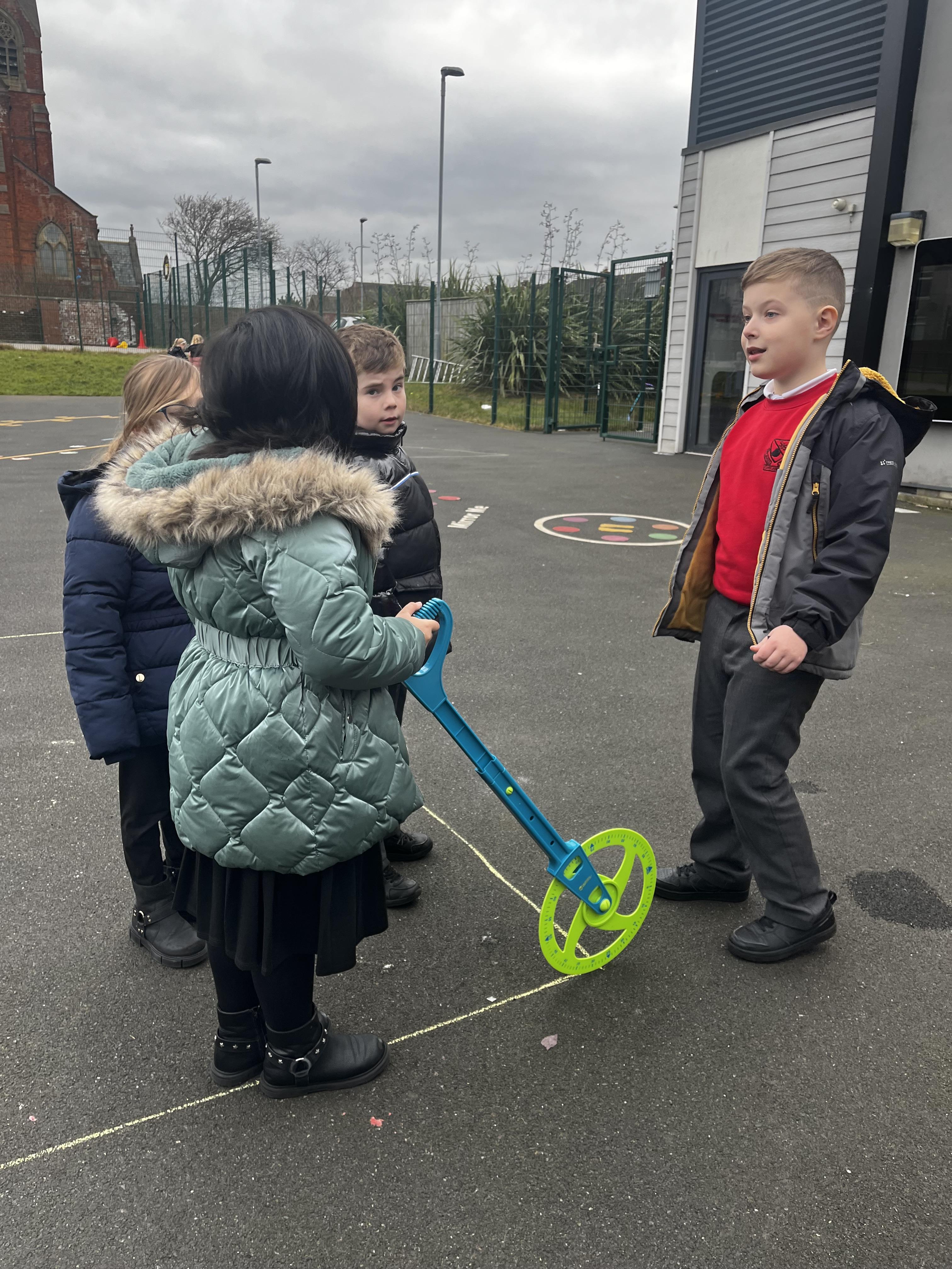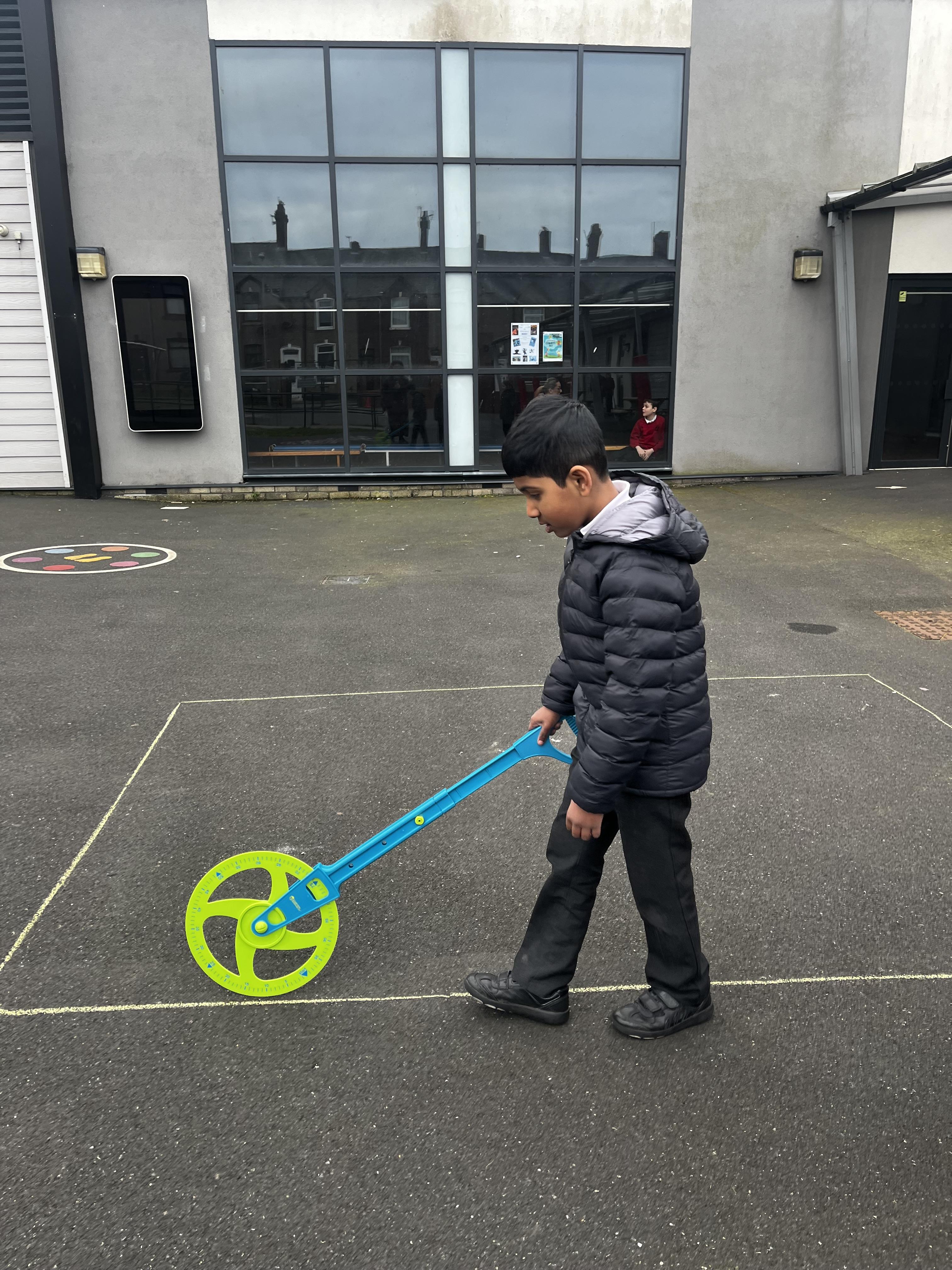 3B have been learning about length and perimeter in maths this week so we measured the perimeter of some shapes on the playground and the playground itself! ����
