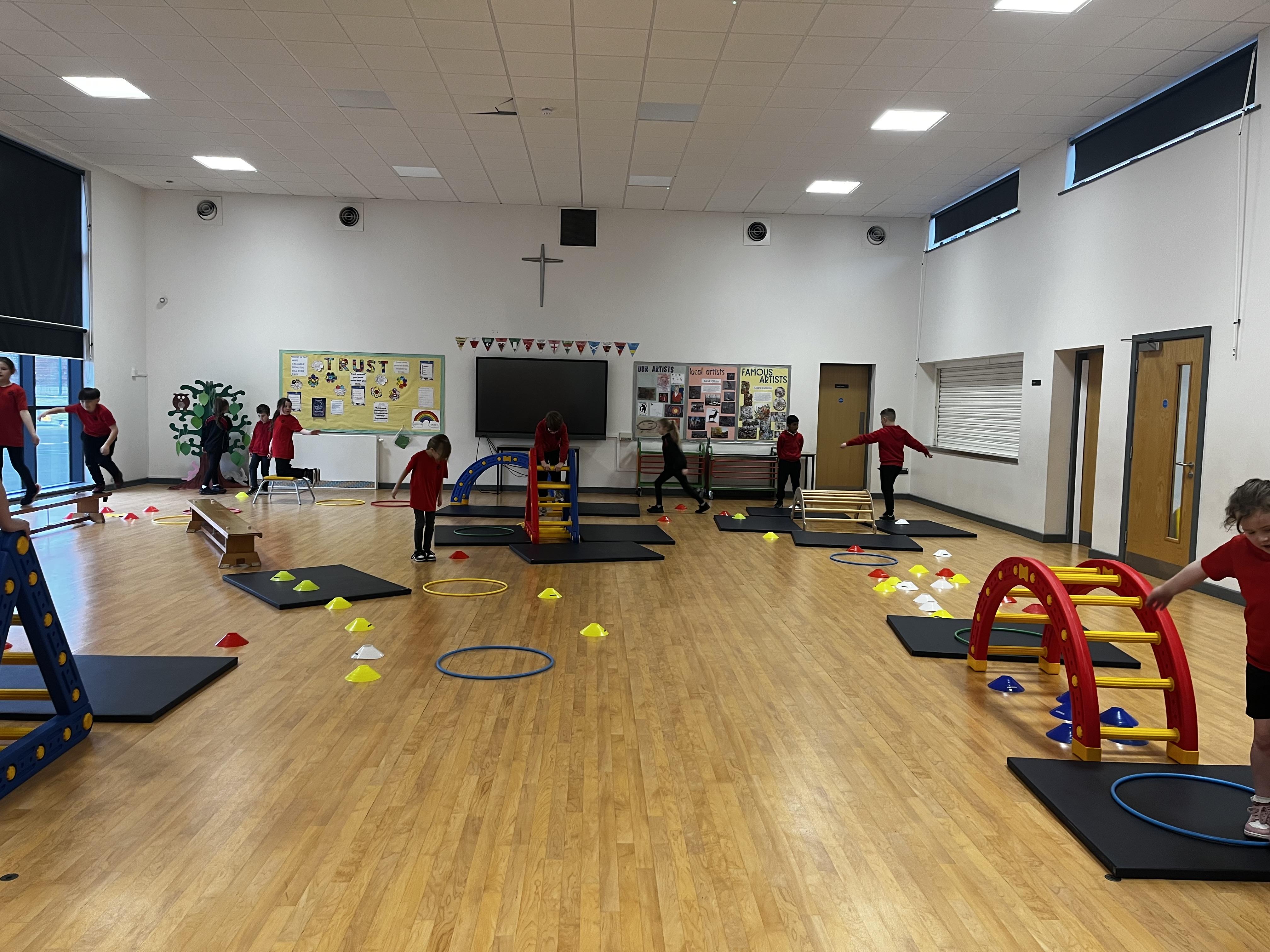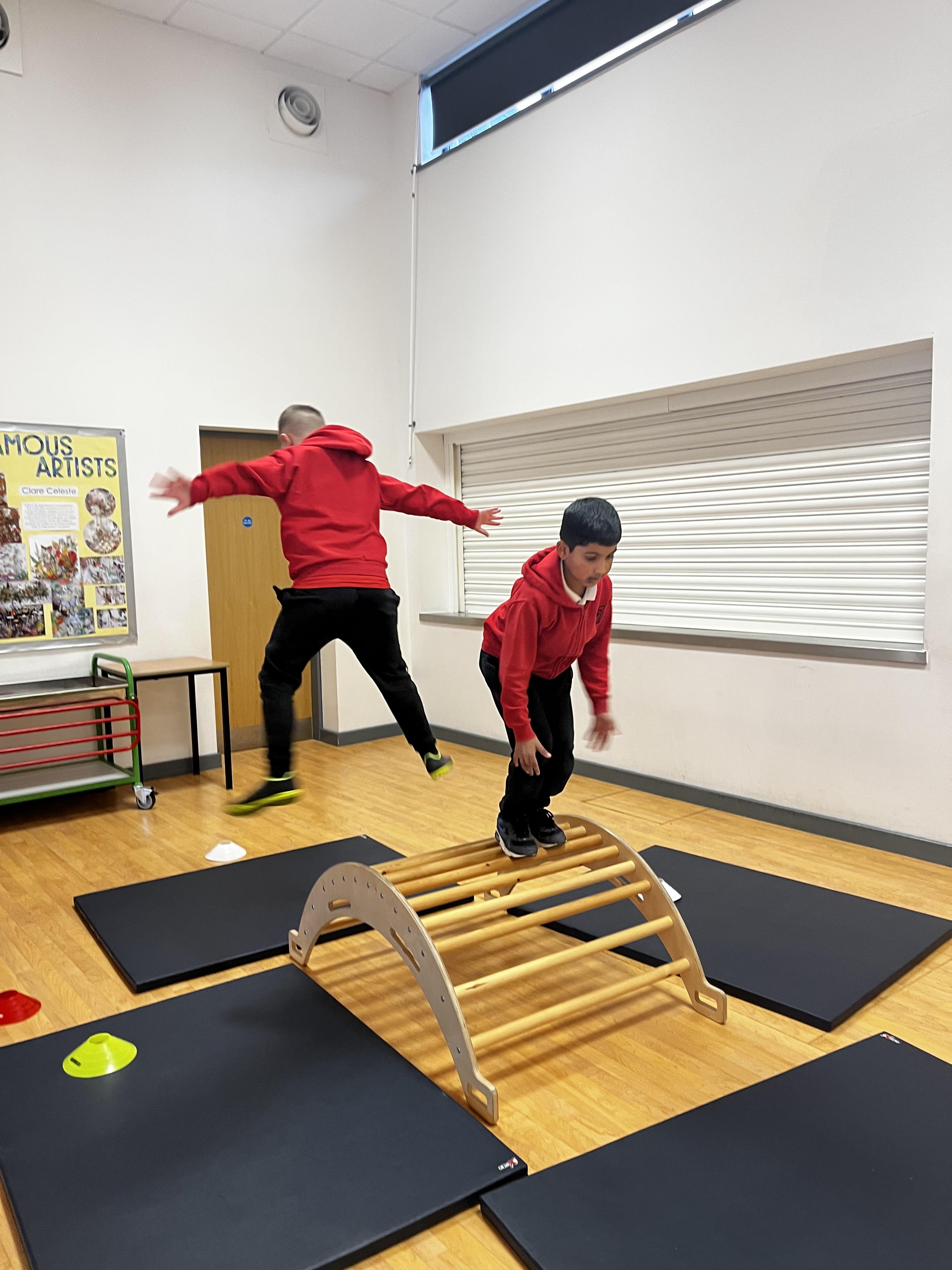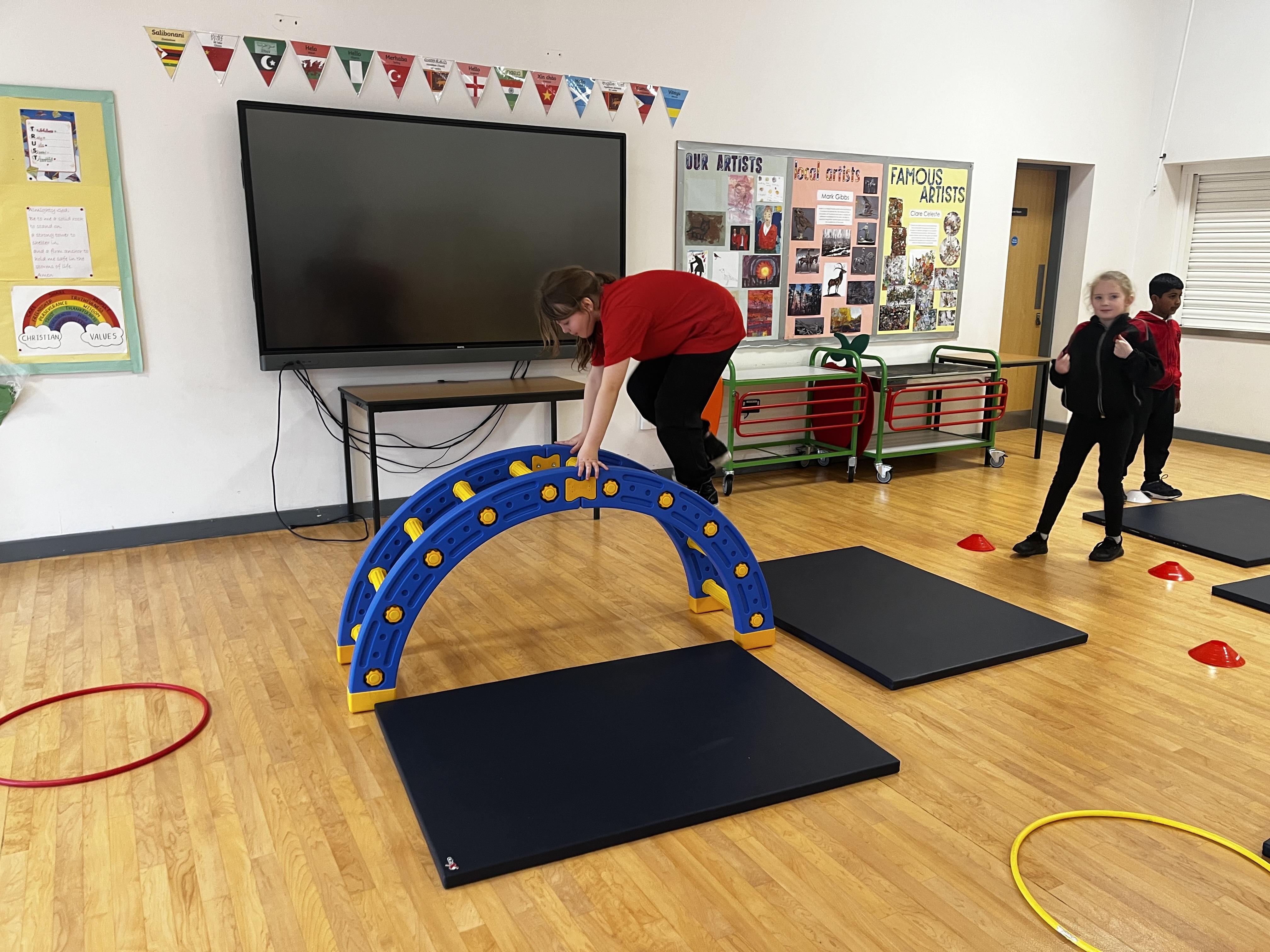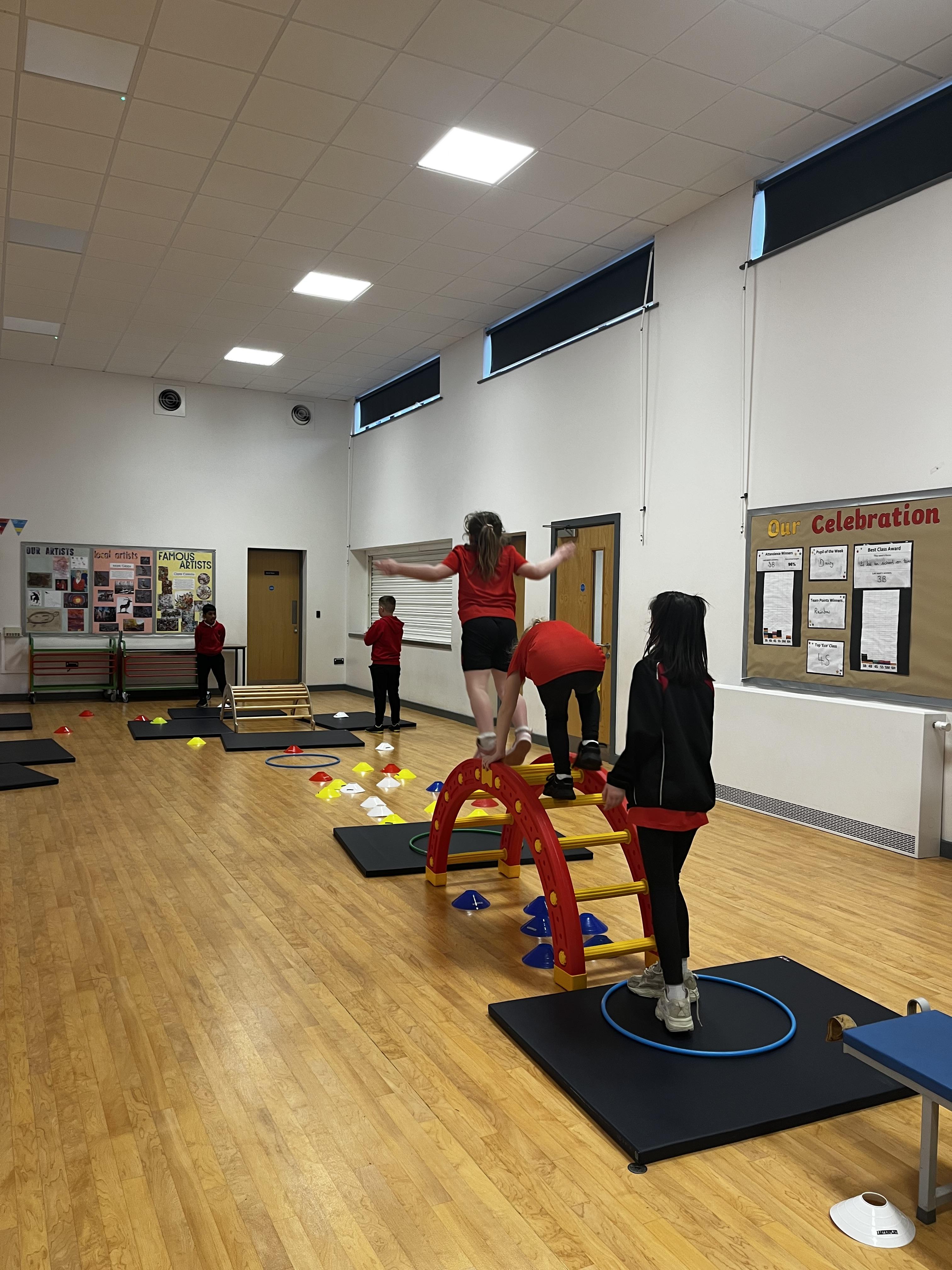 Obstacle courses that have to include a jump in PE today for 3B! The children have created some very impressive obstacle courses and included lots of the jumps we have been learning about, well done!
