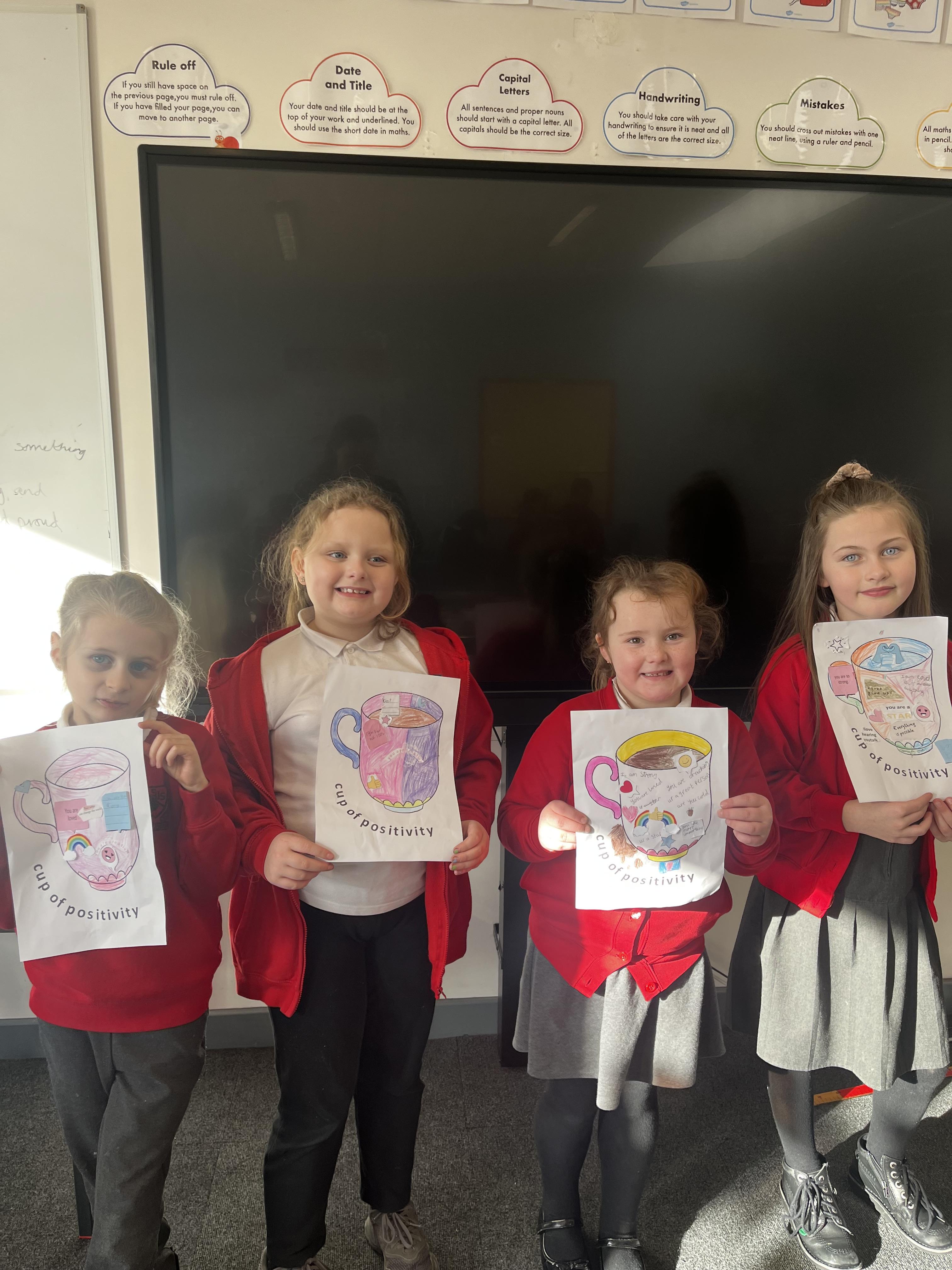 During children's mental health week so in year 3 we have been talking about how important it is to look after our minds as well as our bodies �� We have discussed different ways of doing this and year 3 decided that being kind to others and ourselves was a good way to have good mental health so we filled our cups with positivitea! ☕️ Thinking about the nice things we could say to ourselves and others ✨