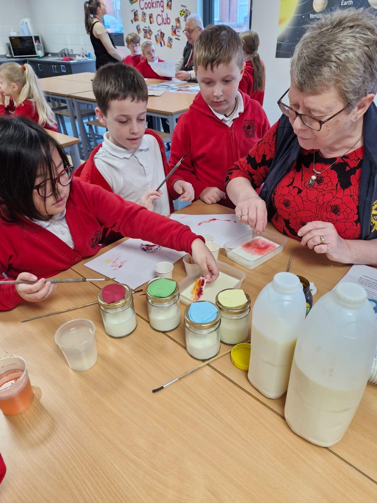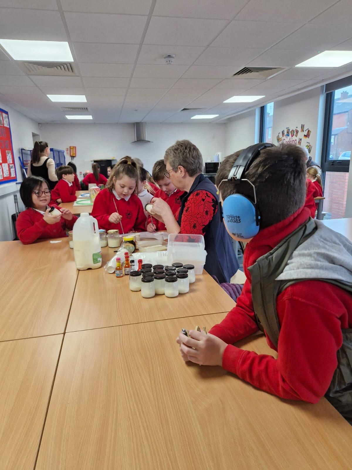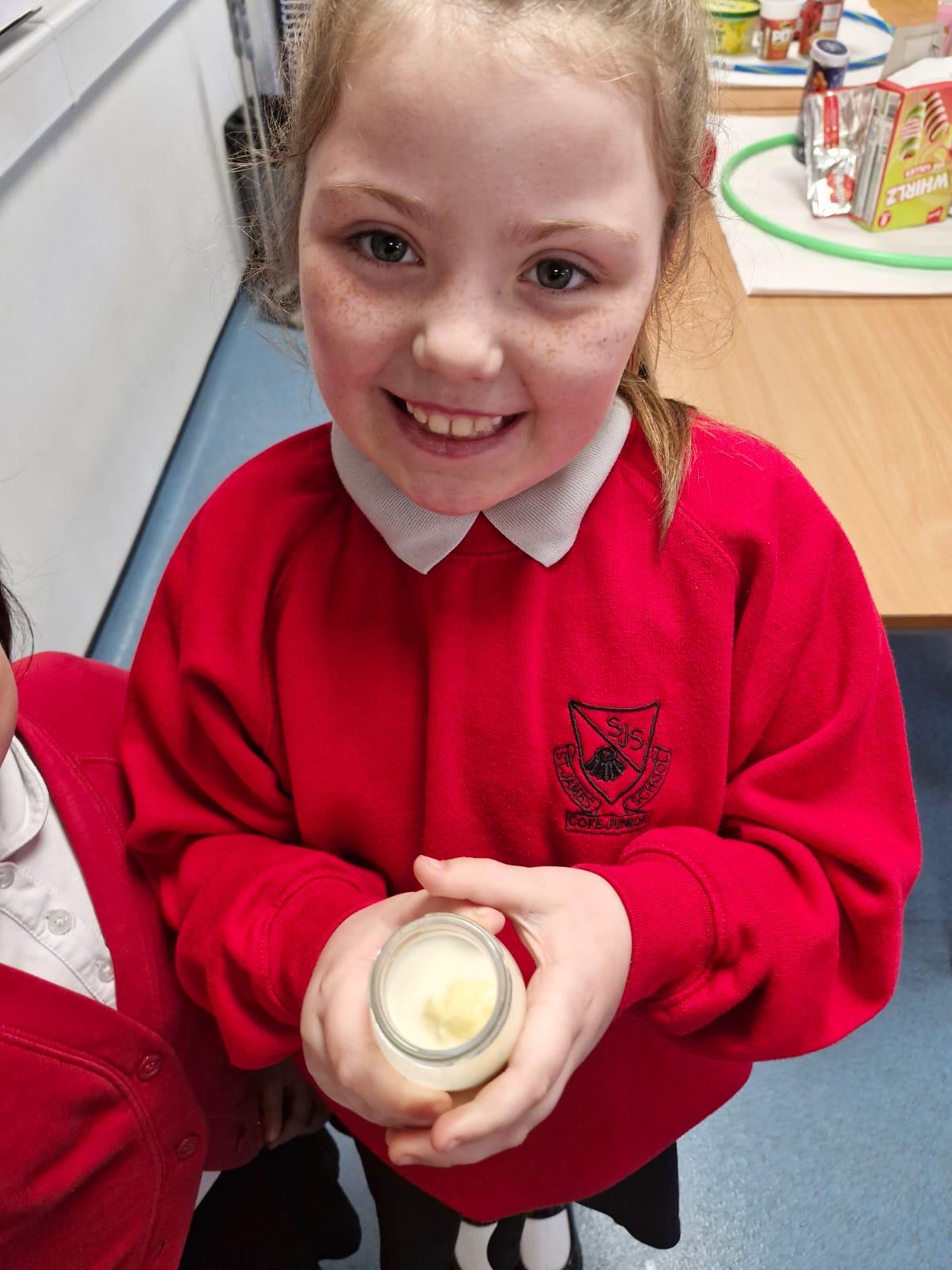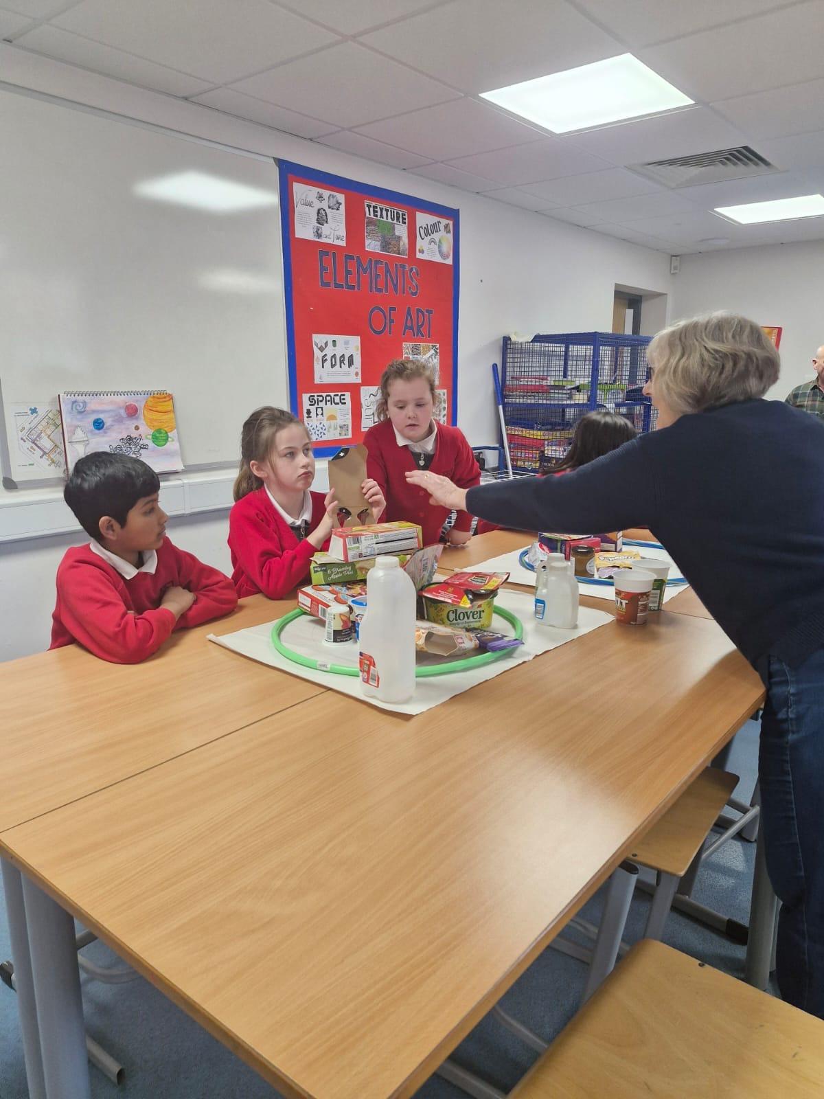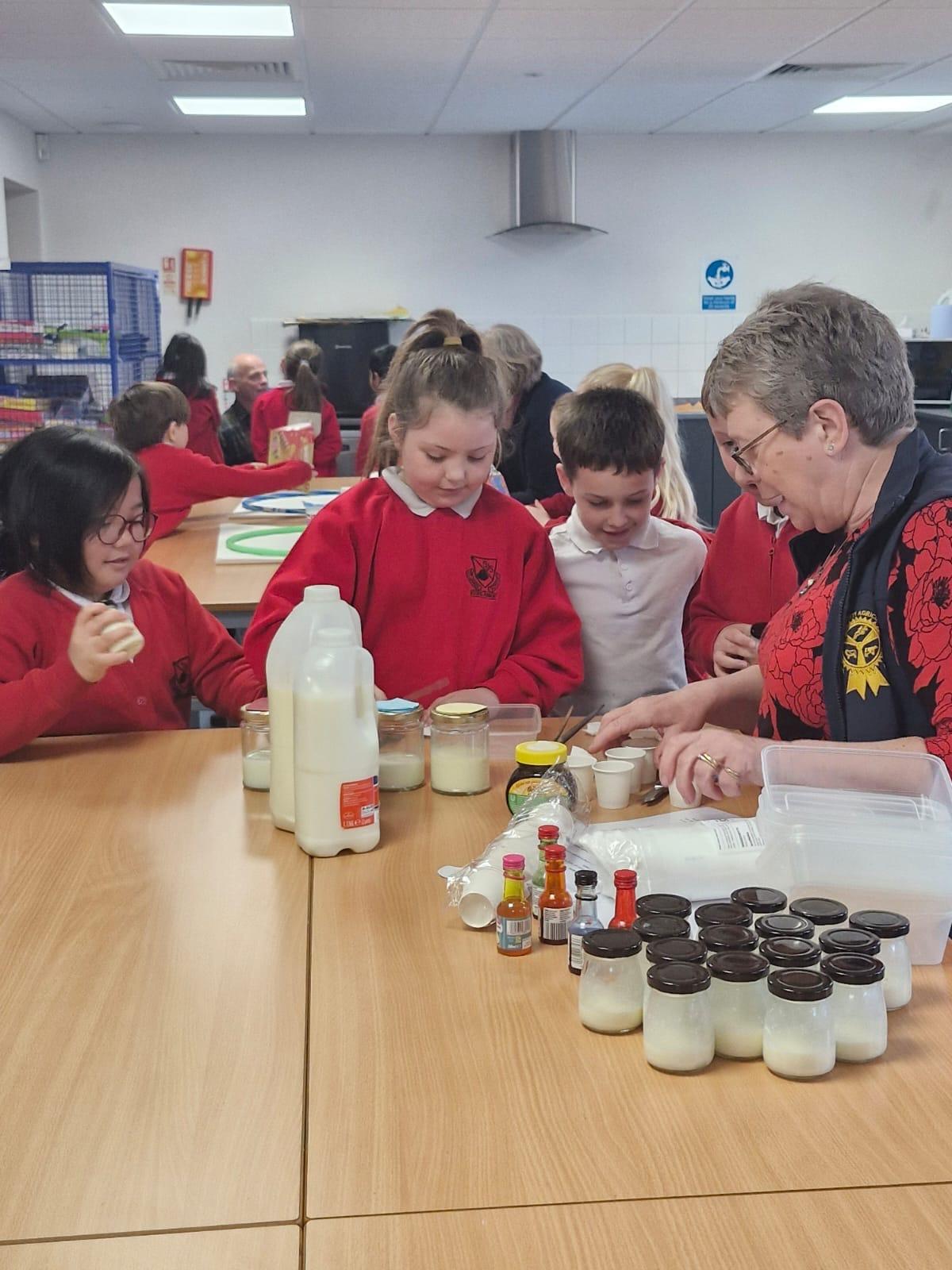 Thank you Westmorland County Agricultural Society for the children's follow up visit into school where they completed a number of tasks about milk and milk products Some of these activities were to shake milk to make butter, sorting through food products to see which ones contained milk, saw the milking machine up close and personal and discussed more about how it worked, they had another informative morning