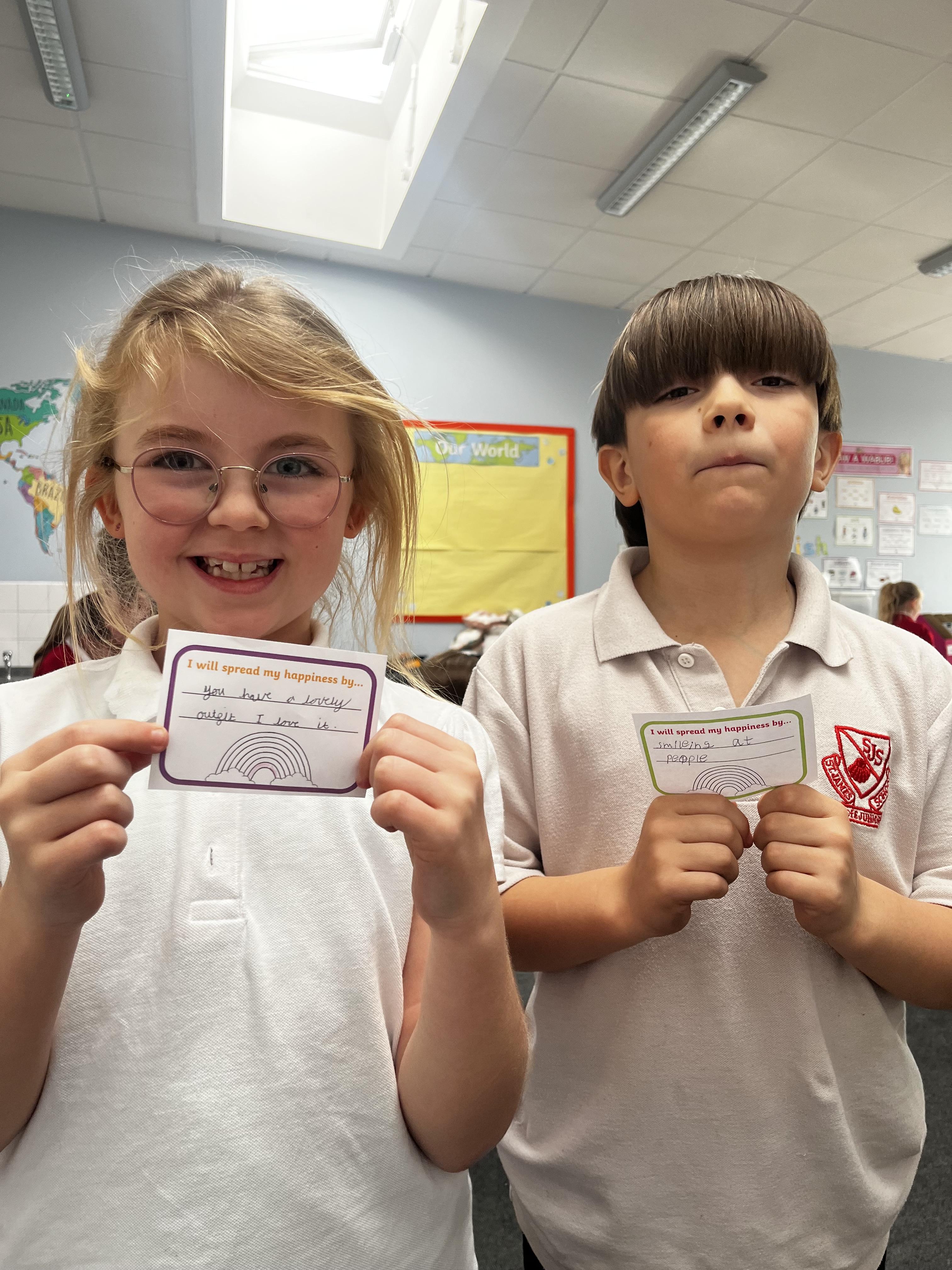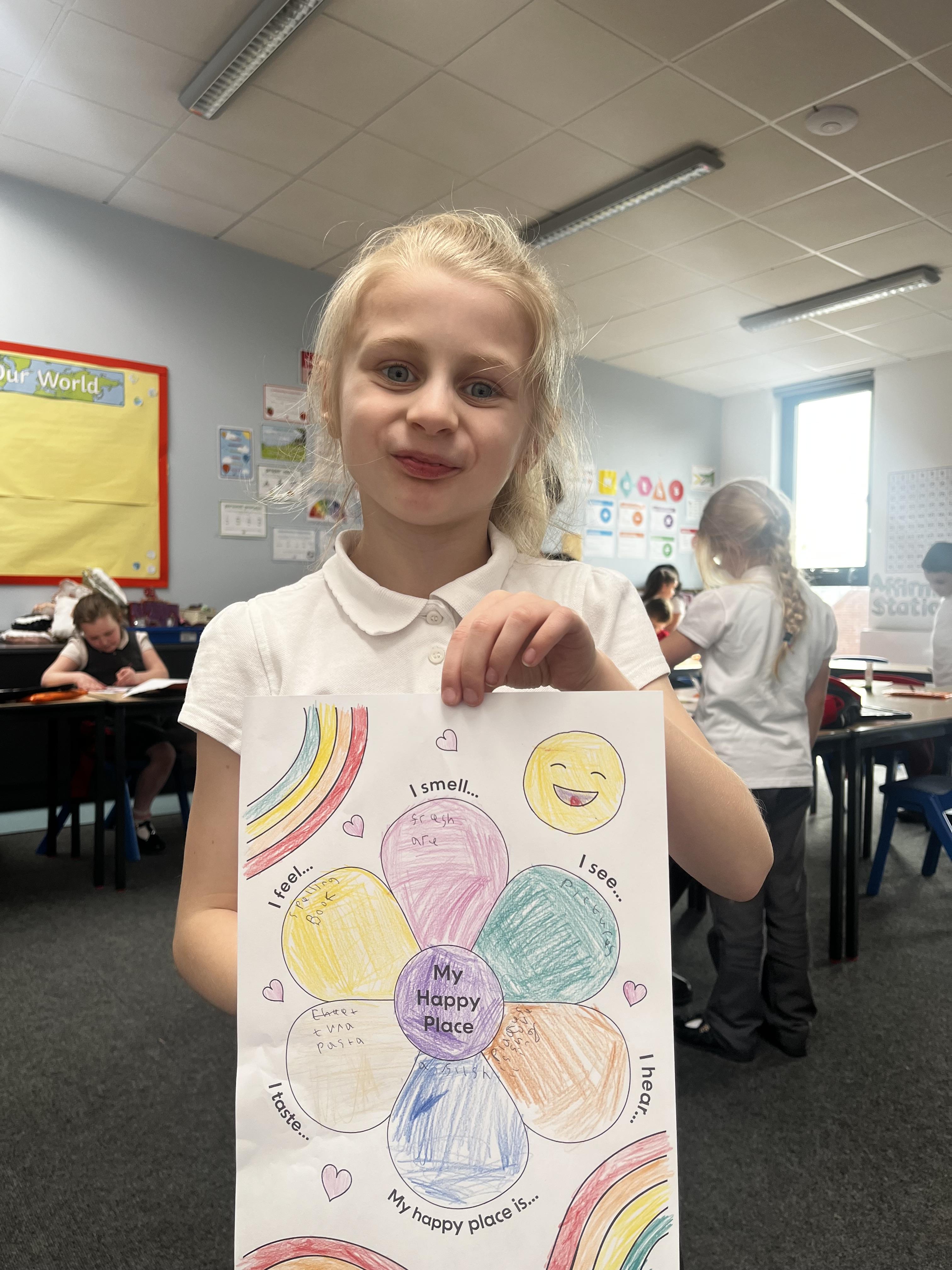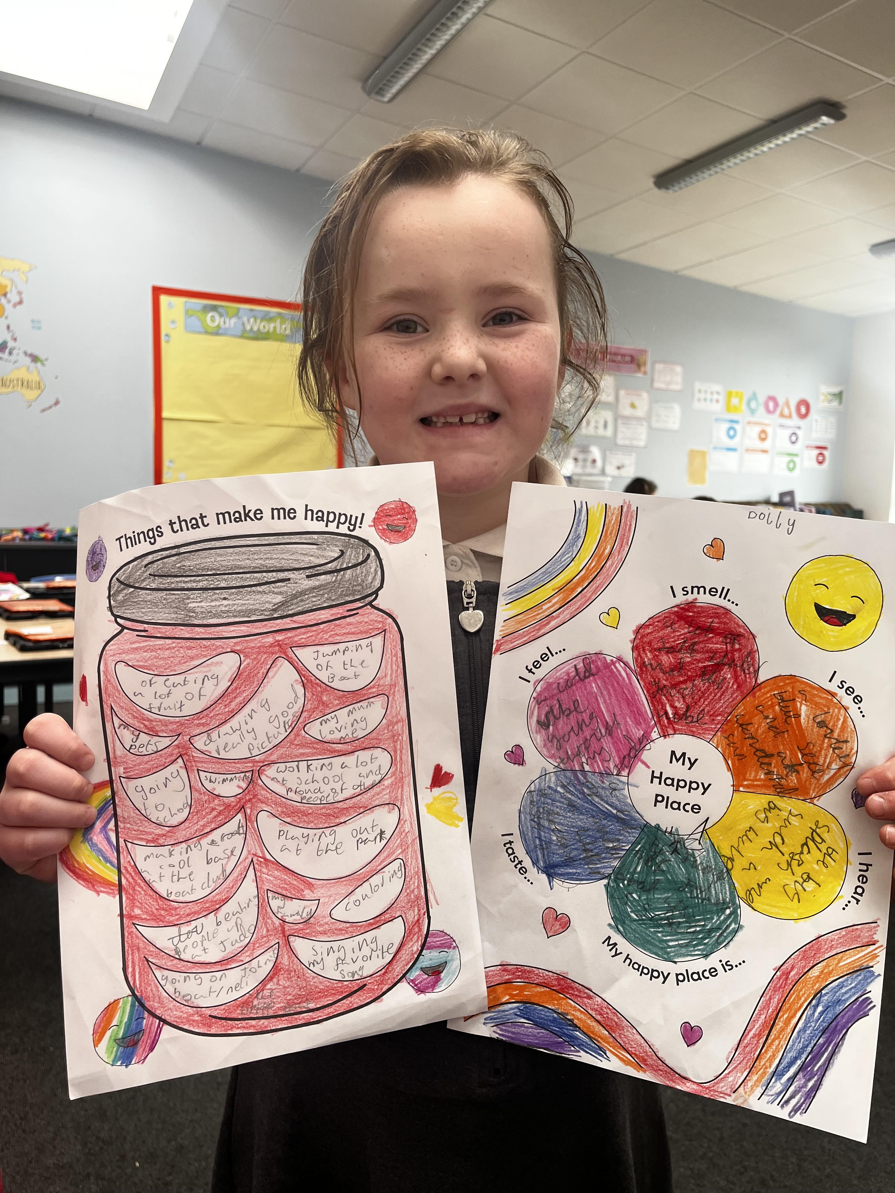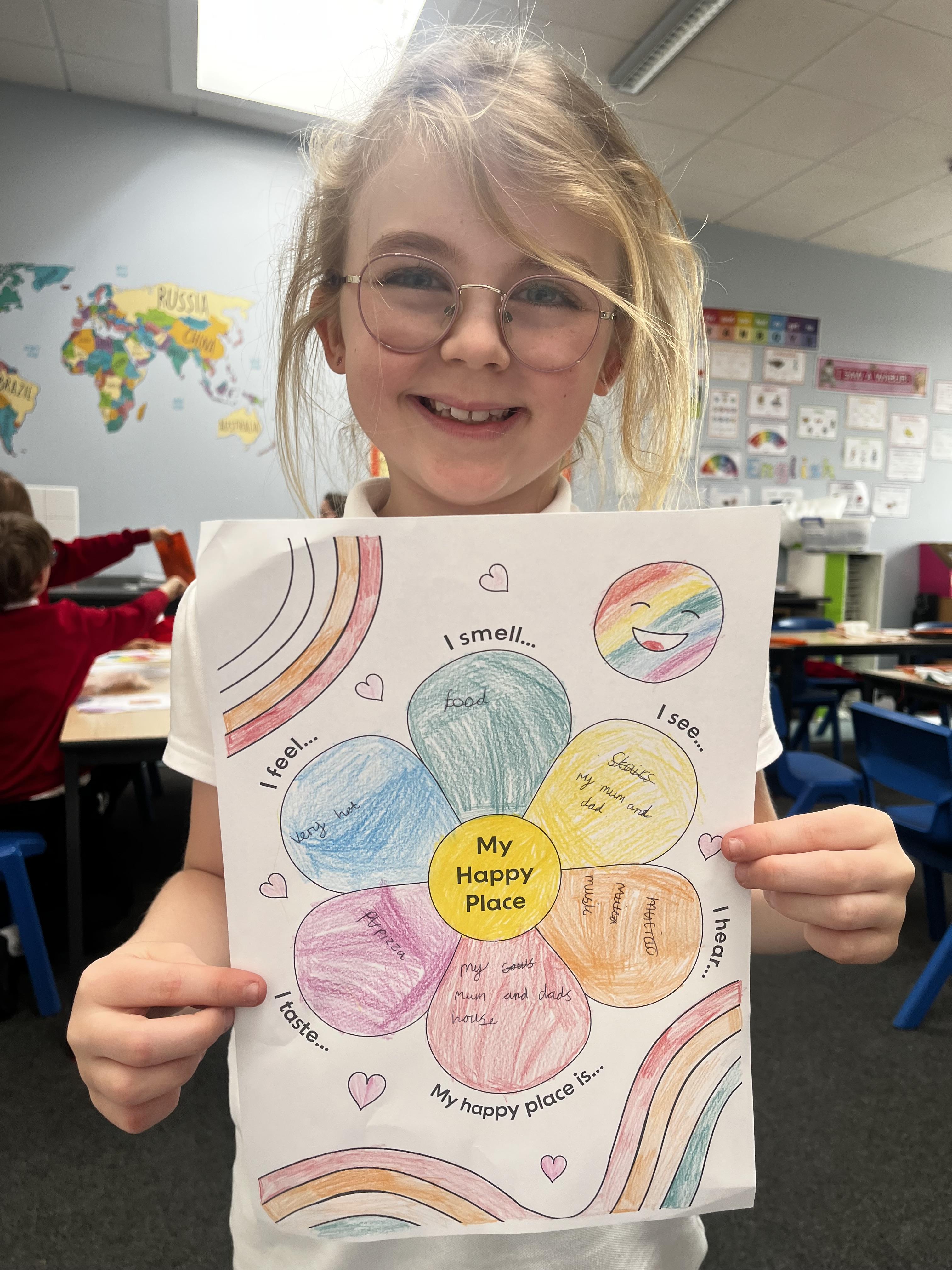 The 20th of March is international day of happiness so in 3B we thought about what makes us happy and our happy places We also thought about how we can share our happiness and can make others around us happy and created a Happiness box to help us with this