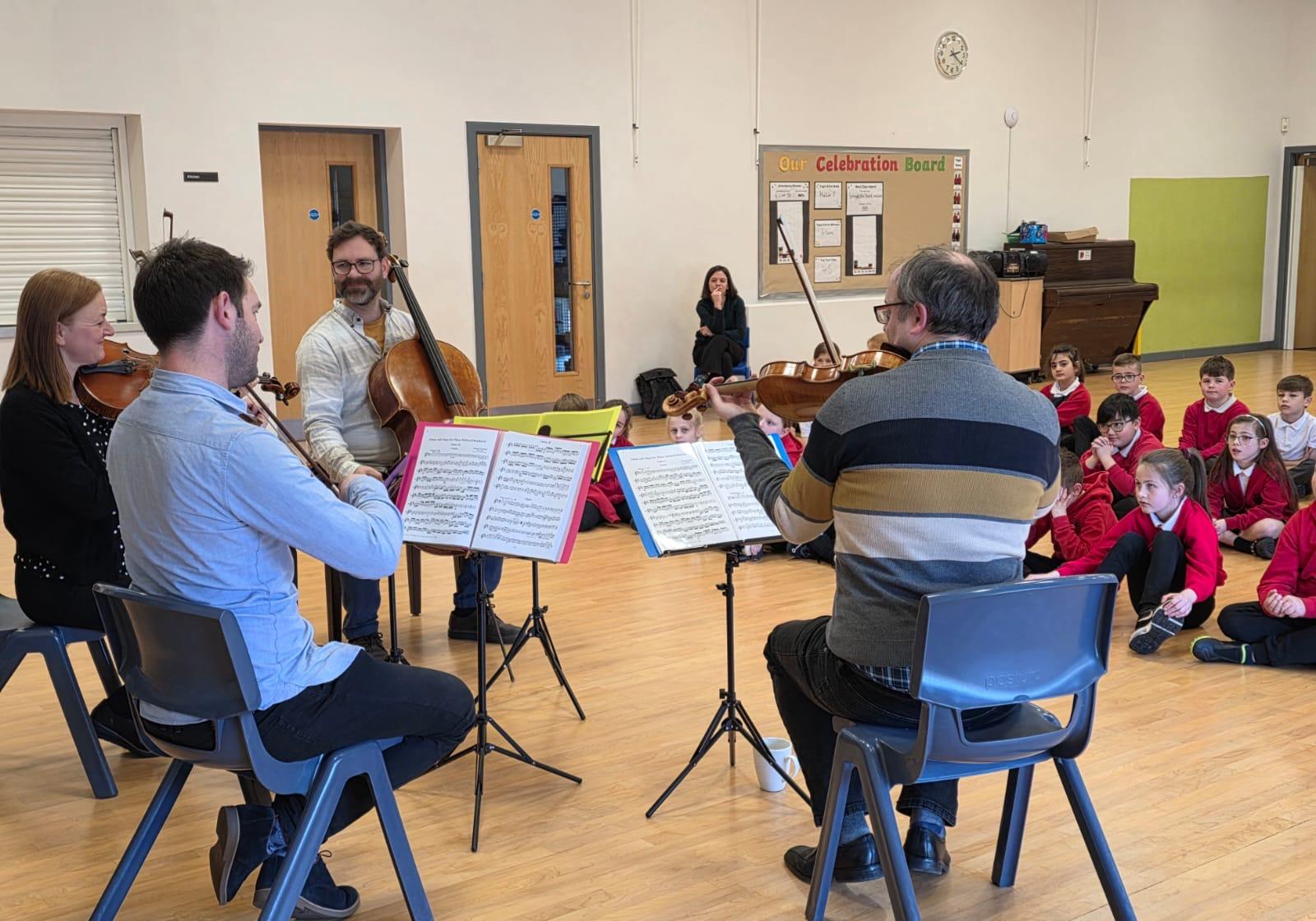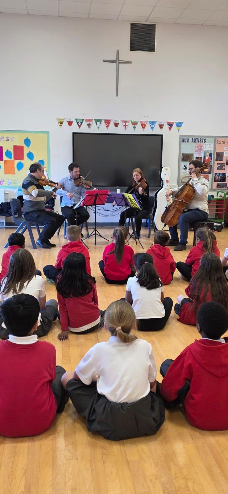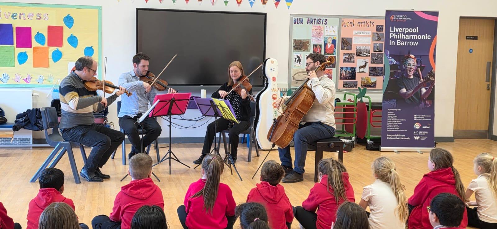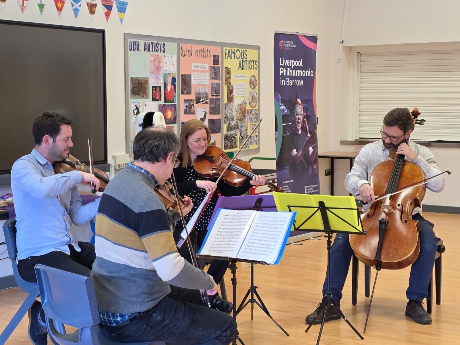 We were very lucky to be entertained by a wonderful string quartet today Four very talented musicians from the Liverpool Philharmonic Orchestra impressed everyone with their fabulous performances