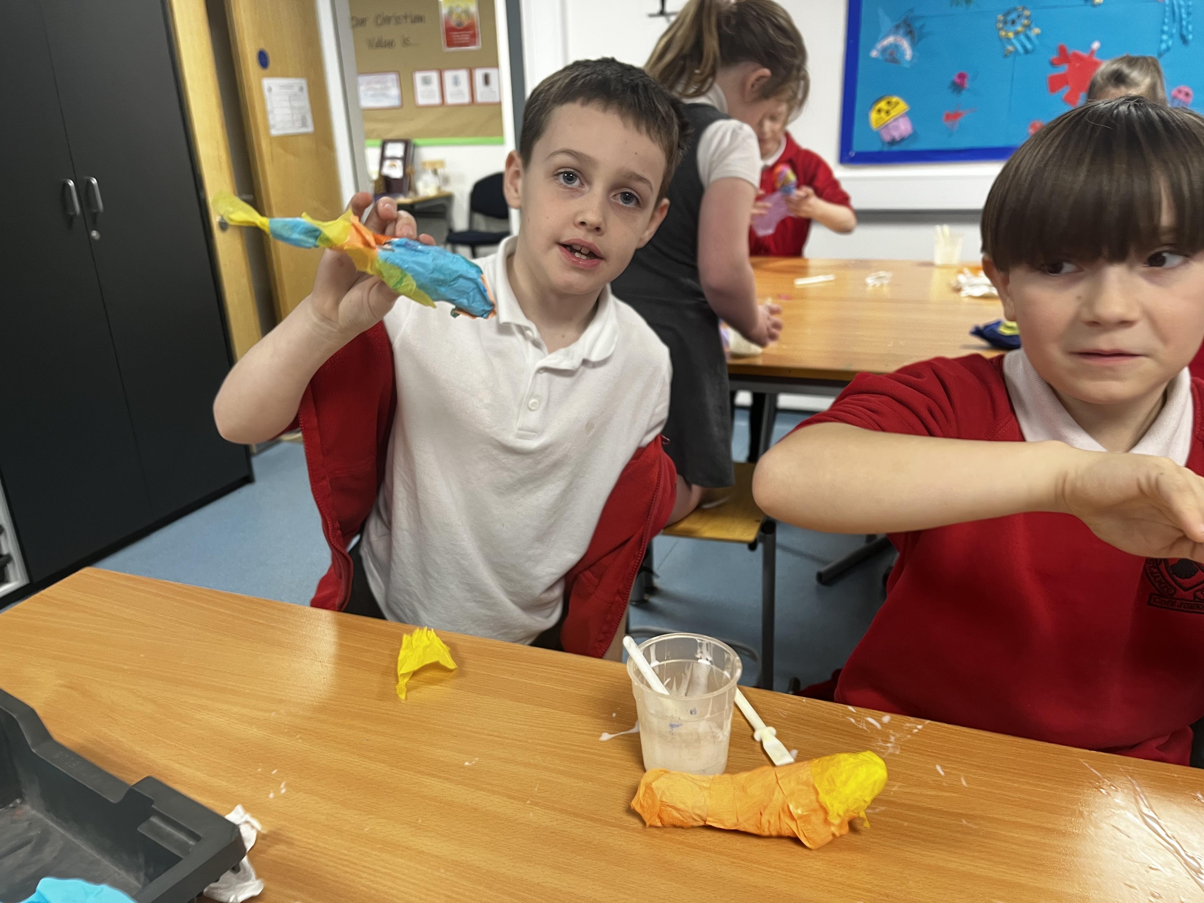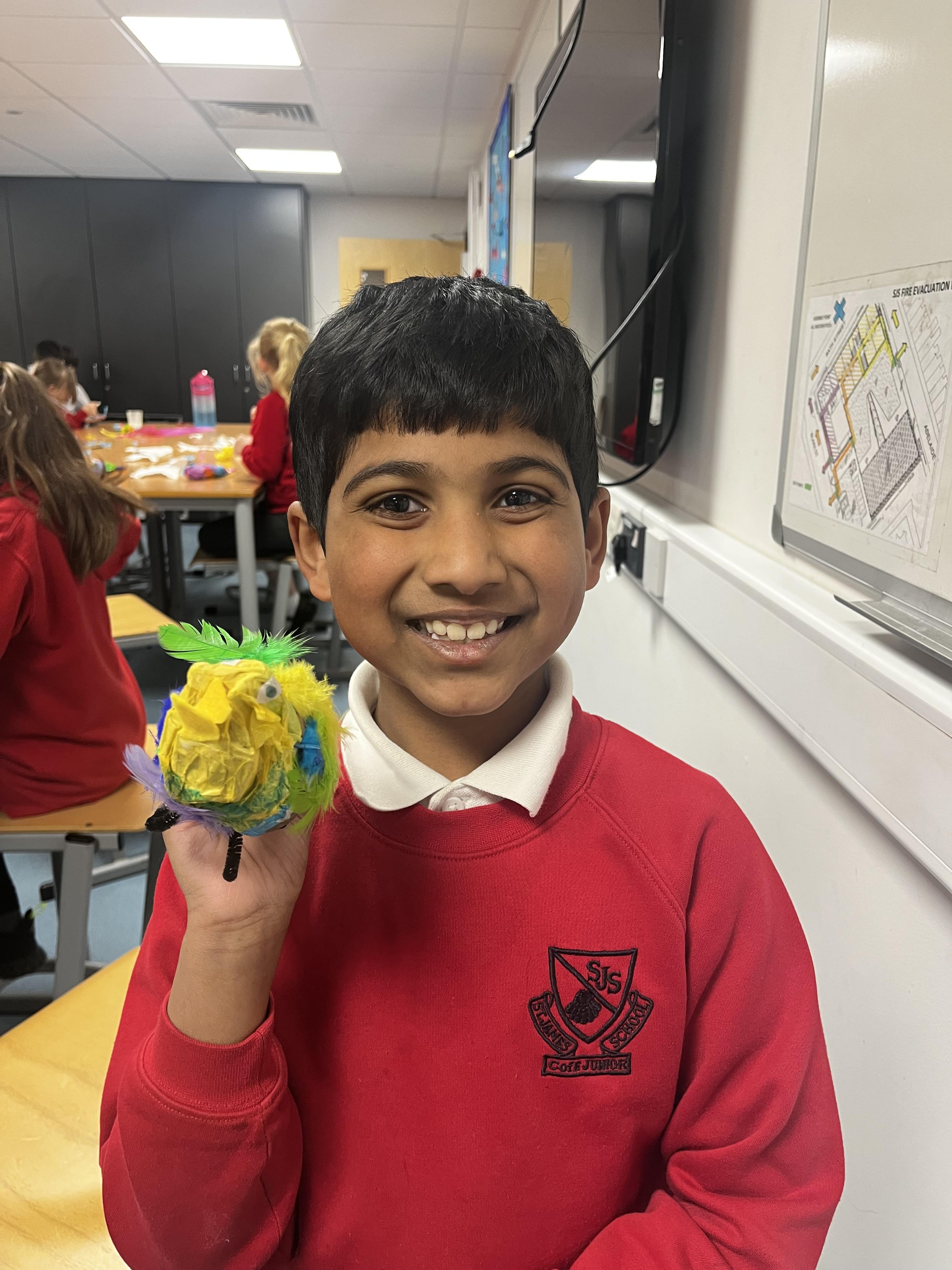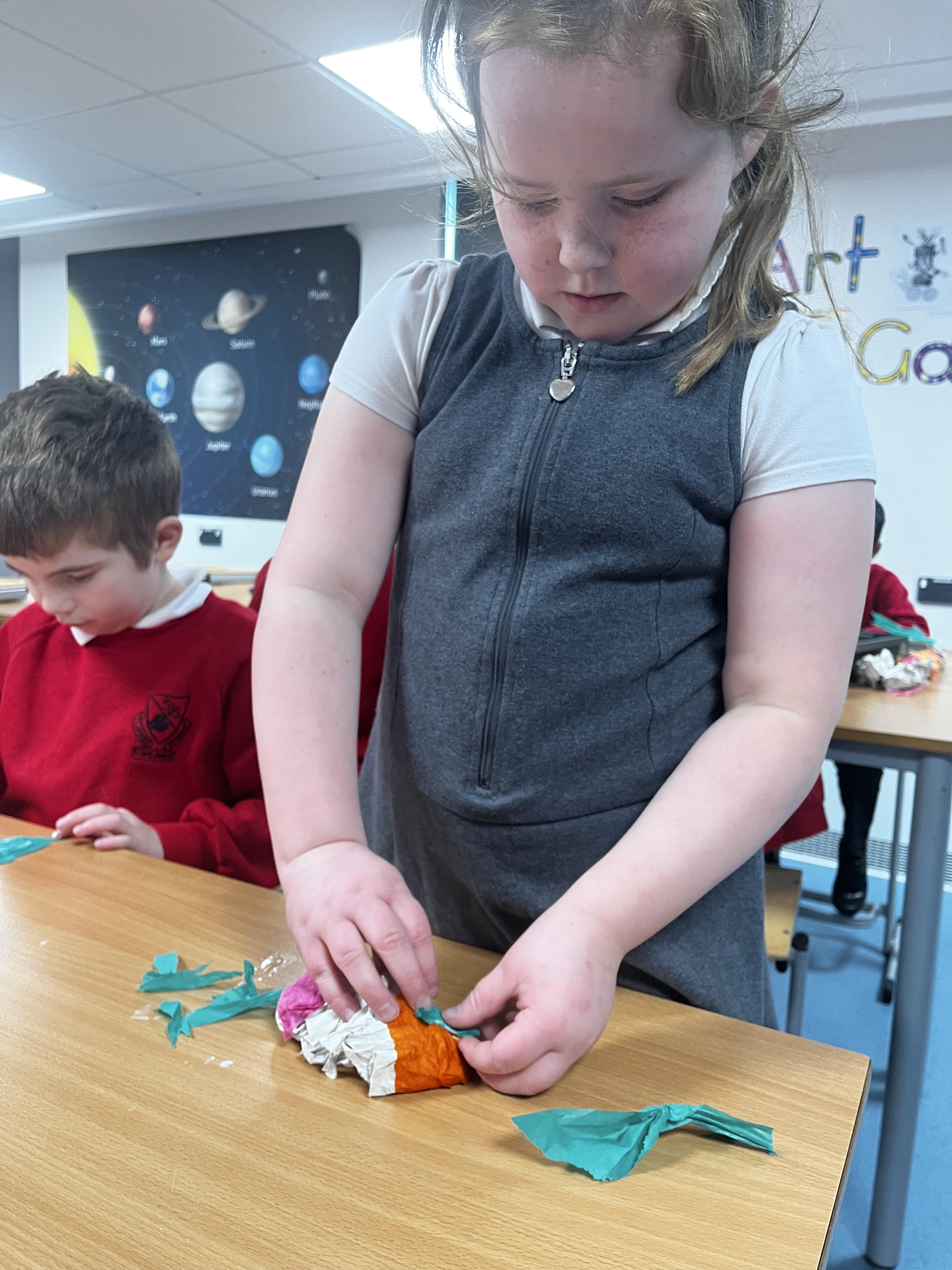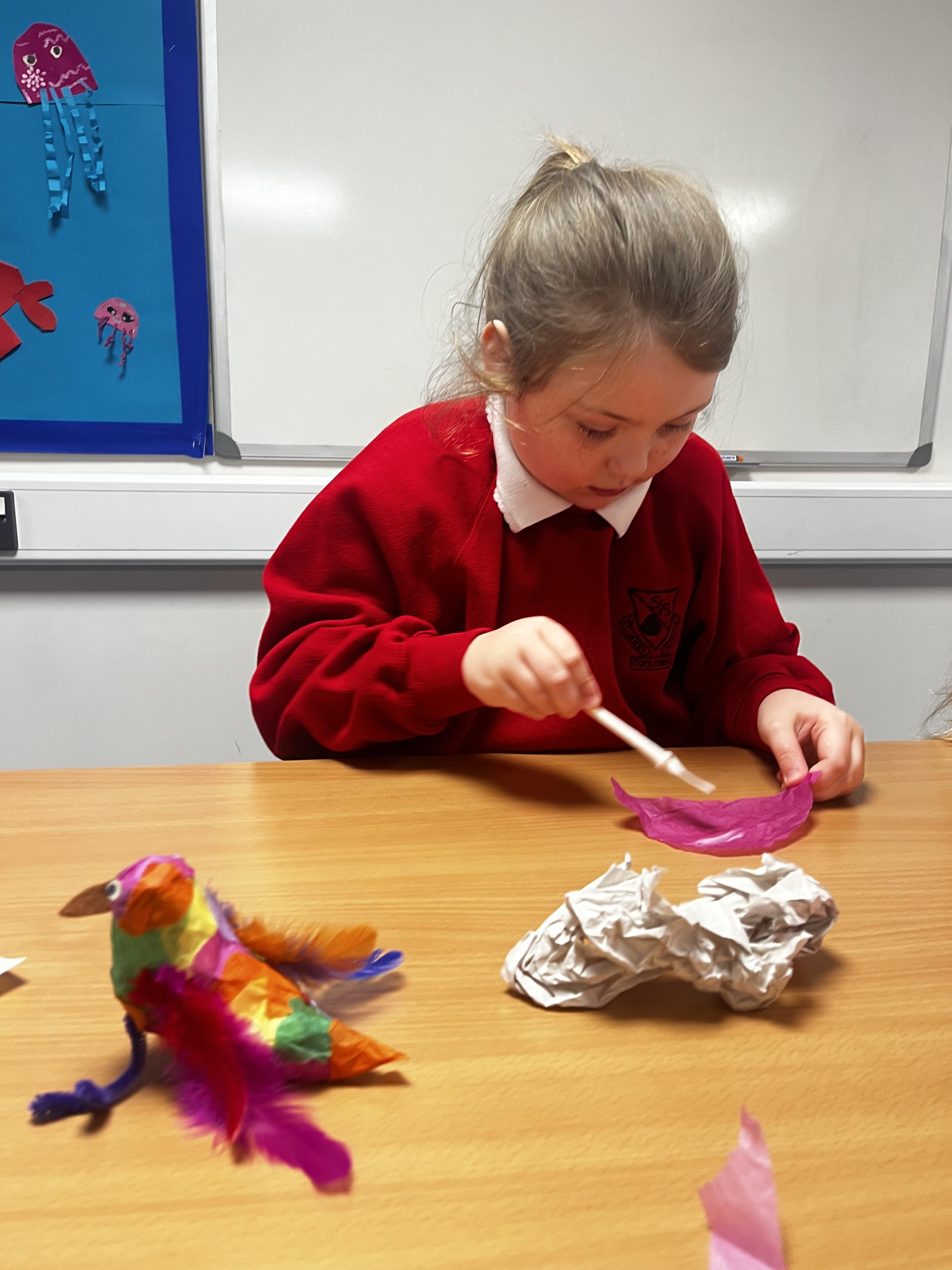 In art the children created some 3D art work and made some colourful birds to be displayed in the classroom