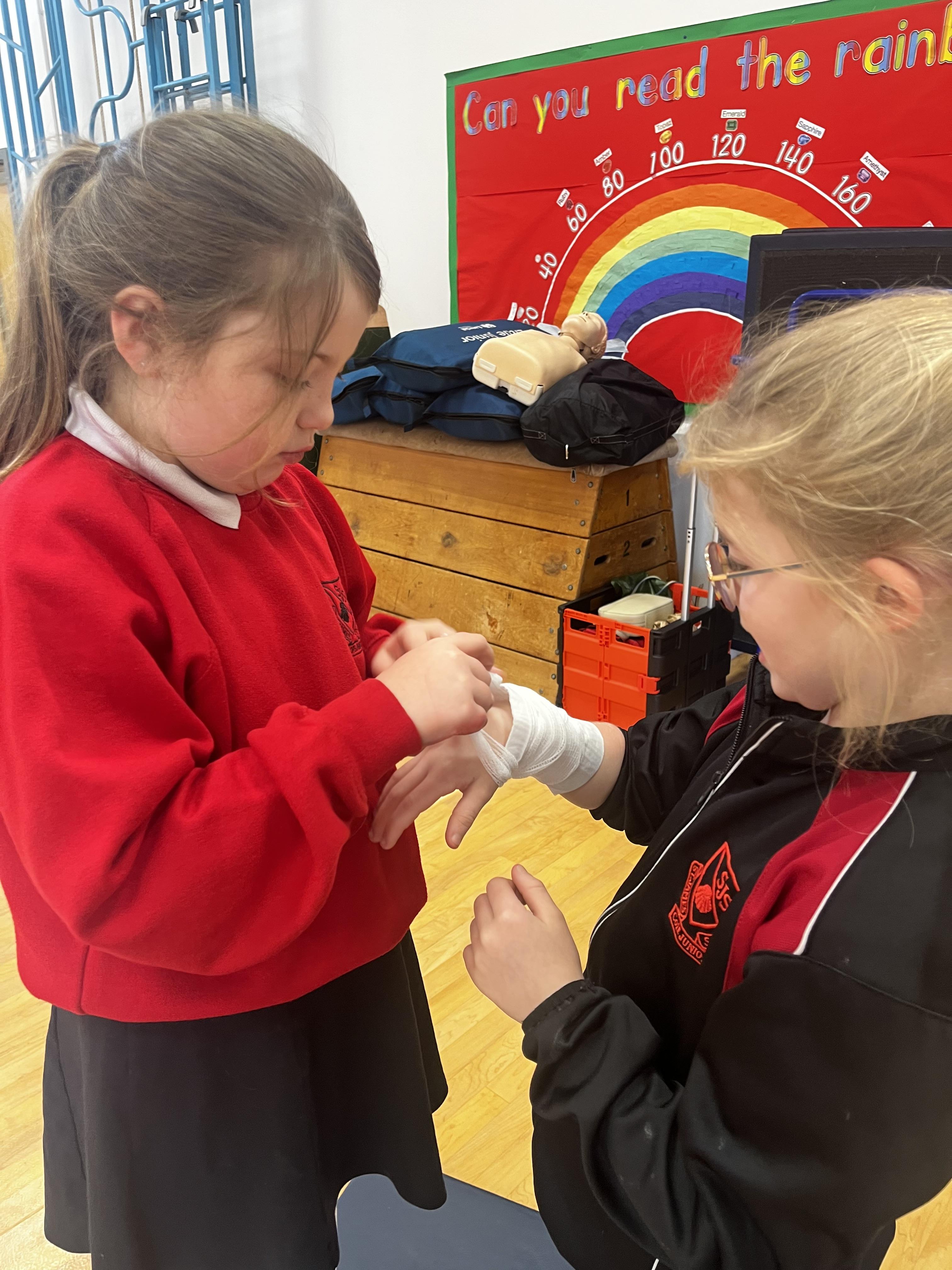 Lower school took part in an act fast first aid session today in school where they learnt what to do in an emergency situation, the recovery position and how to apply bandages. They all worked really hard and we have some amazing first aiders now in school!