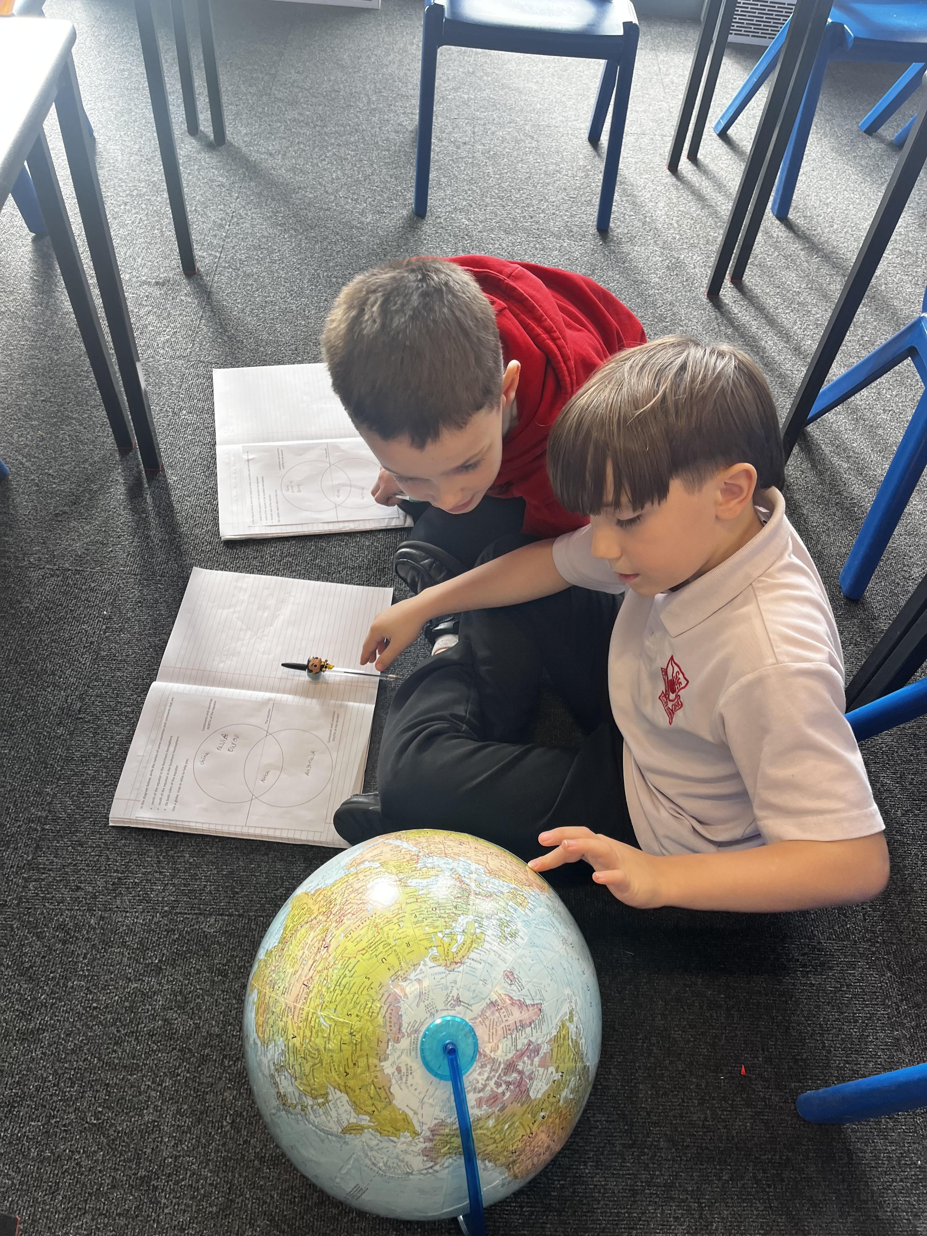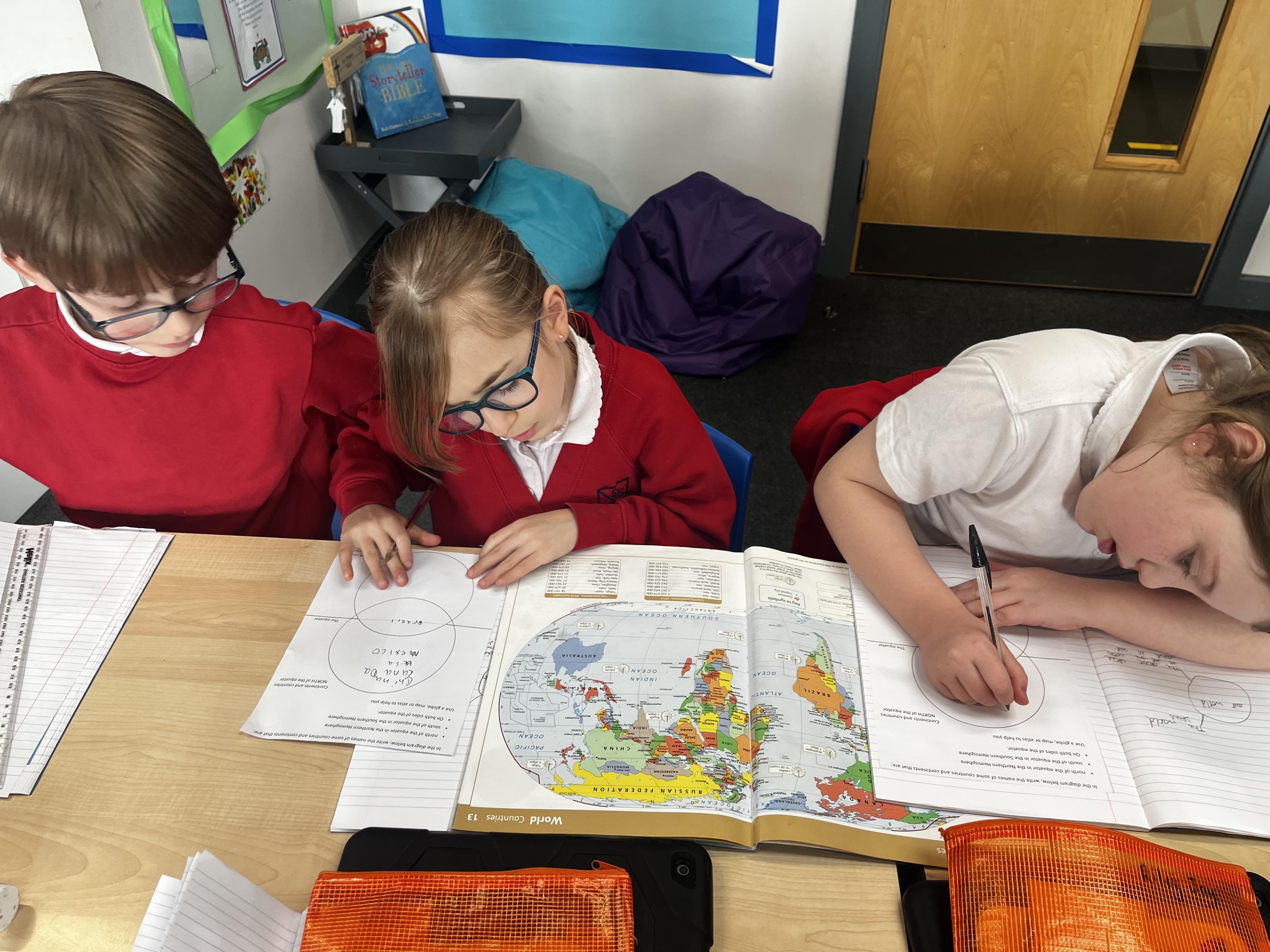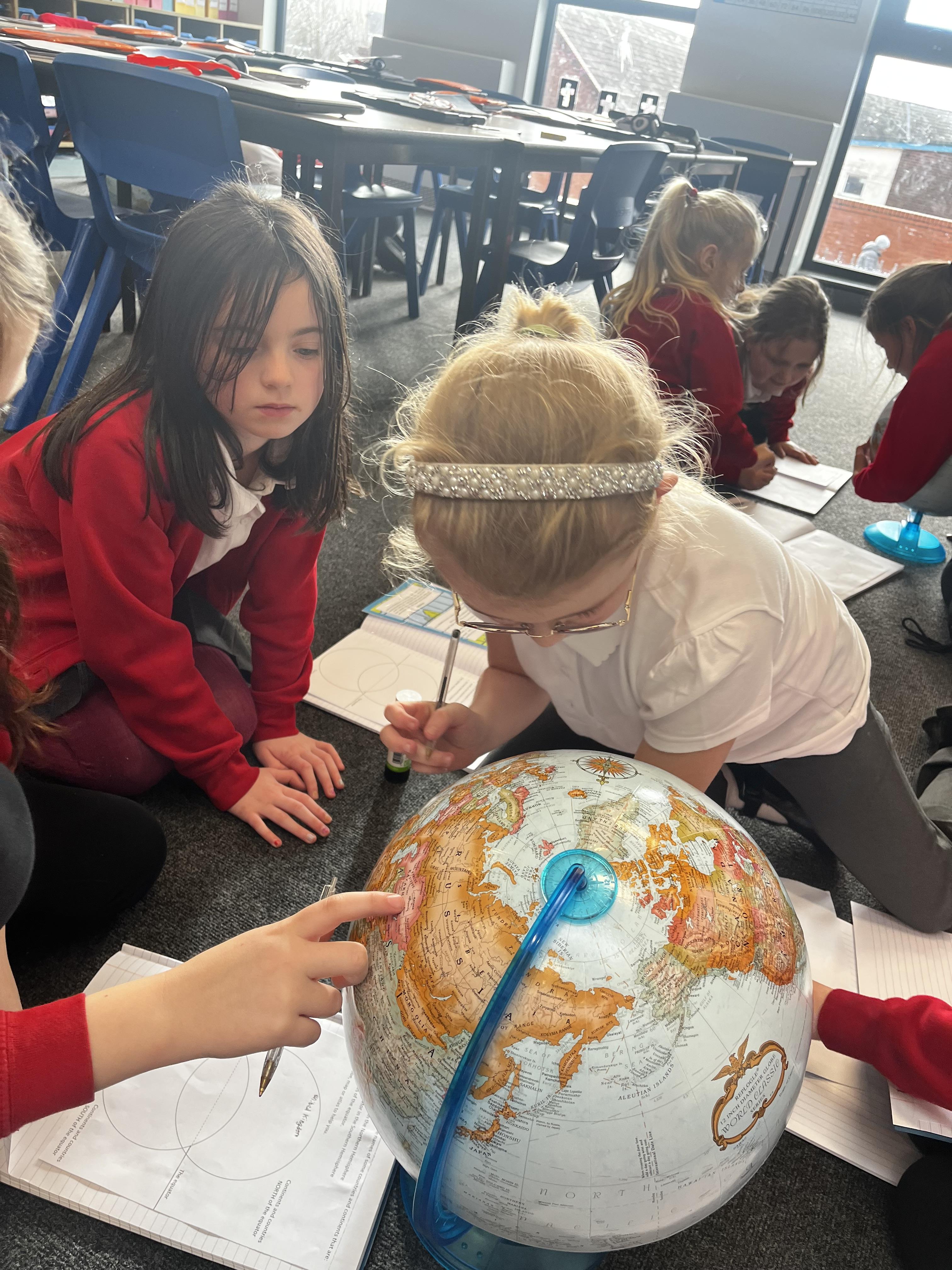 We have used globes and atlases to explore our world in geography today They looked at where different continents and countries are and at the equator, labelling countries in the northern and southern hemisphere's