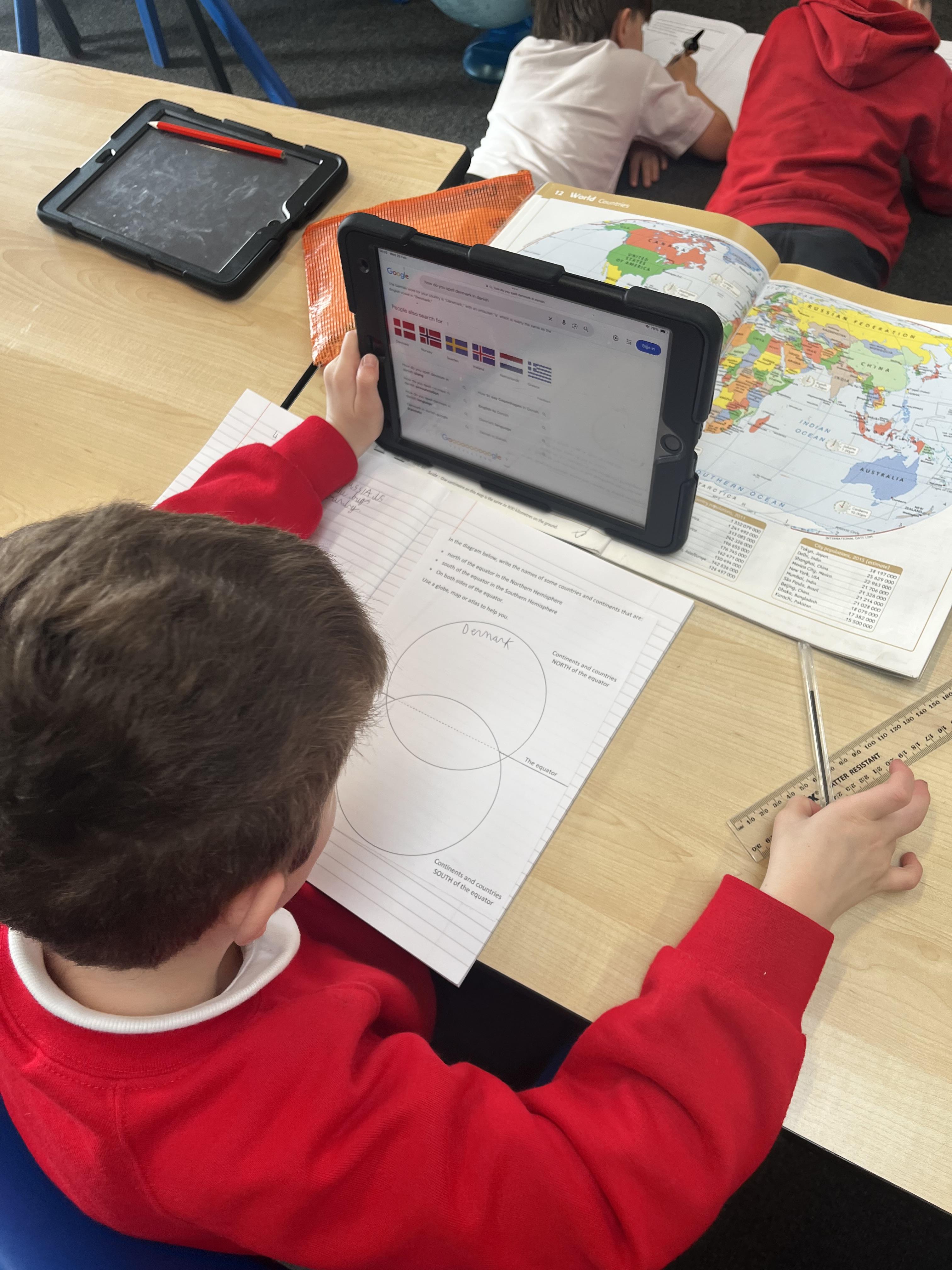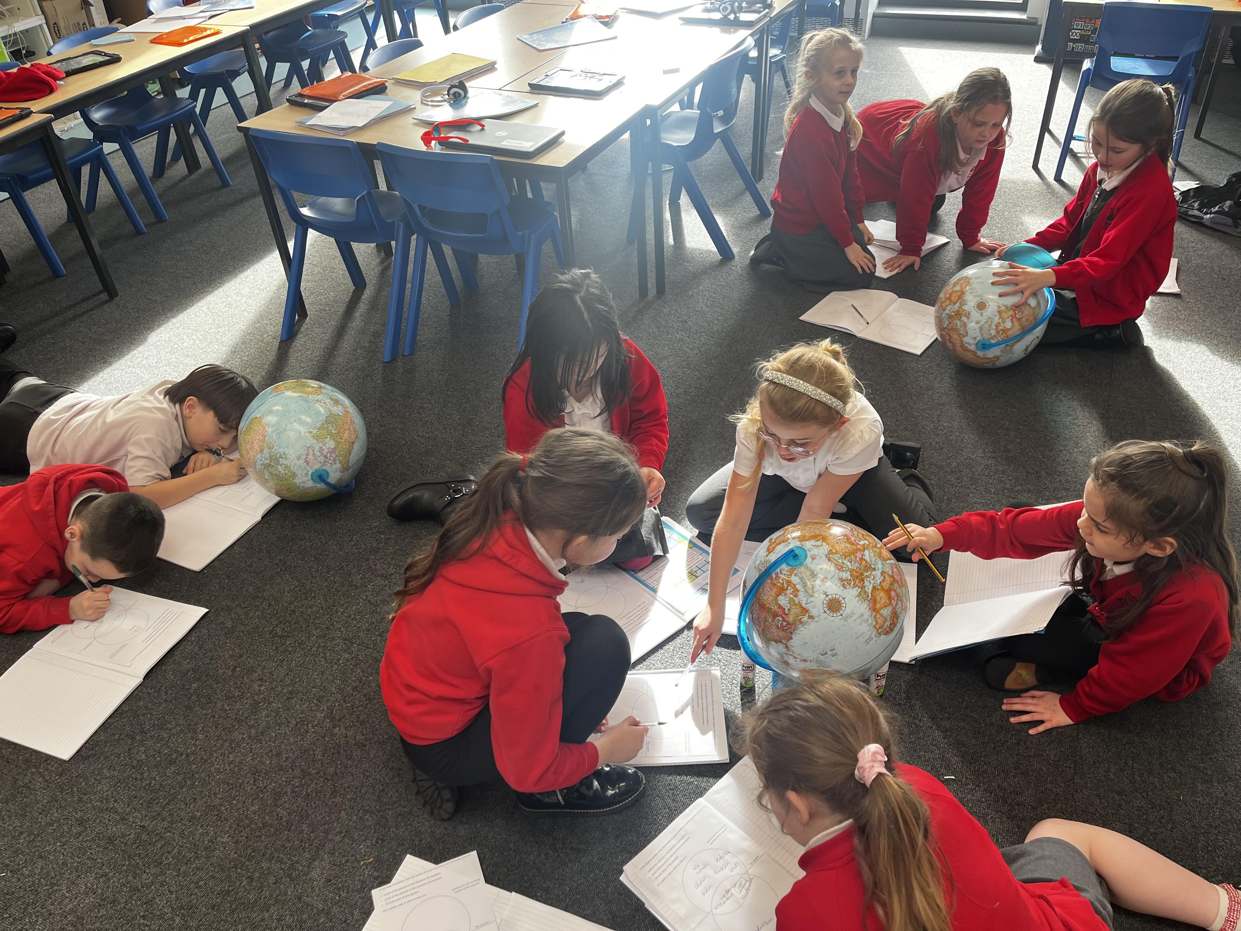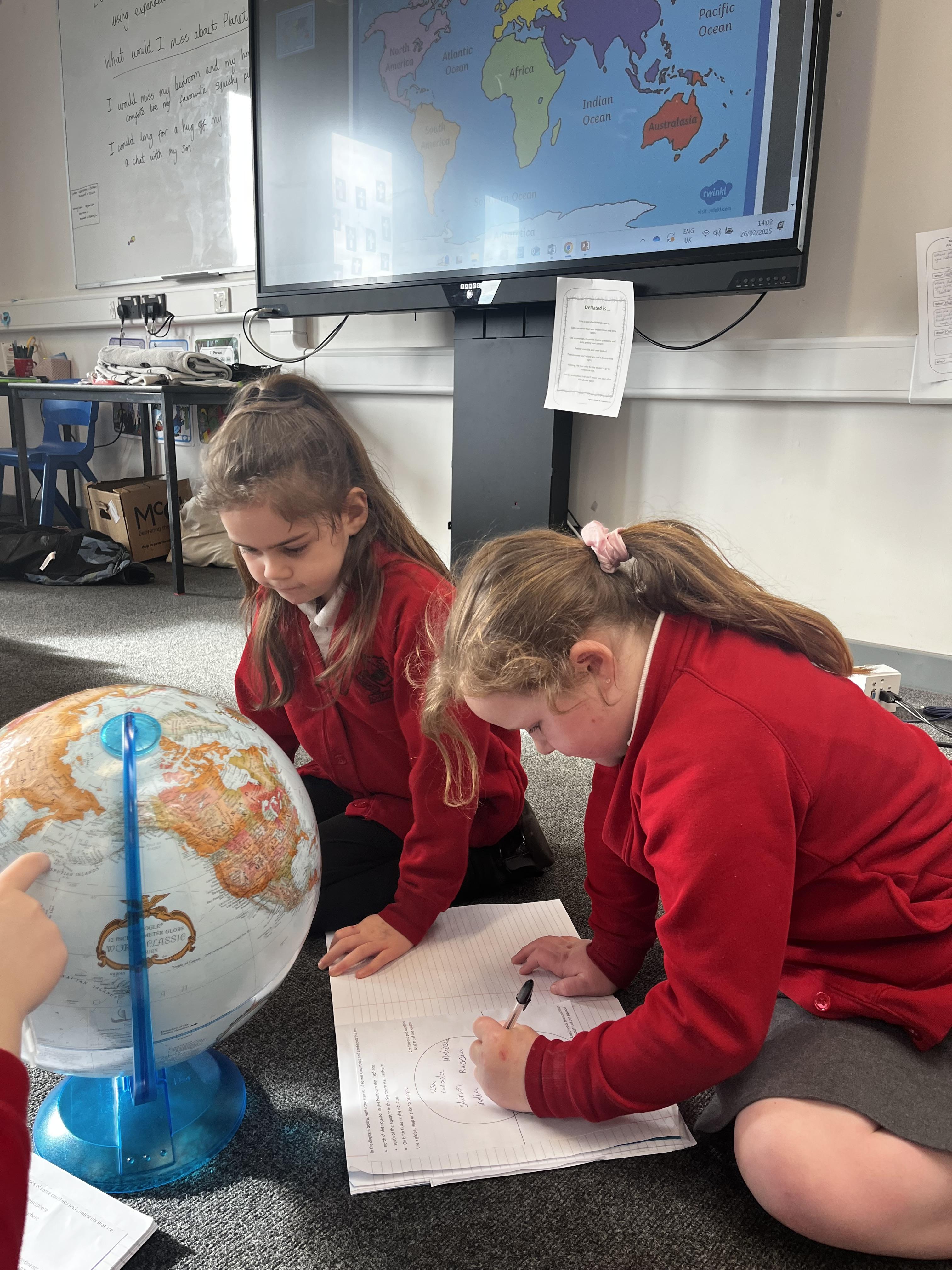 We have used globes and atlases to explore our world in geography today They looked at where different continents and countries are and at the equator, labelling countries in the northern and southern hemisphere's
